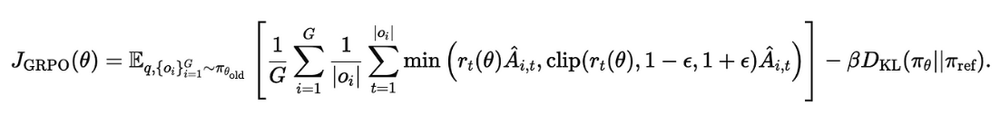GRPO 本质上是一种旨在提升模型推理能力的强化学习算法。该技术最早发表于其研究论文《DeepSeekMath: Pushing the Limits of Mathematical Reasoning in Open Language Models》[1],随后也被应用于 DeepSeek-R1 的后训练阶段。