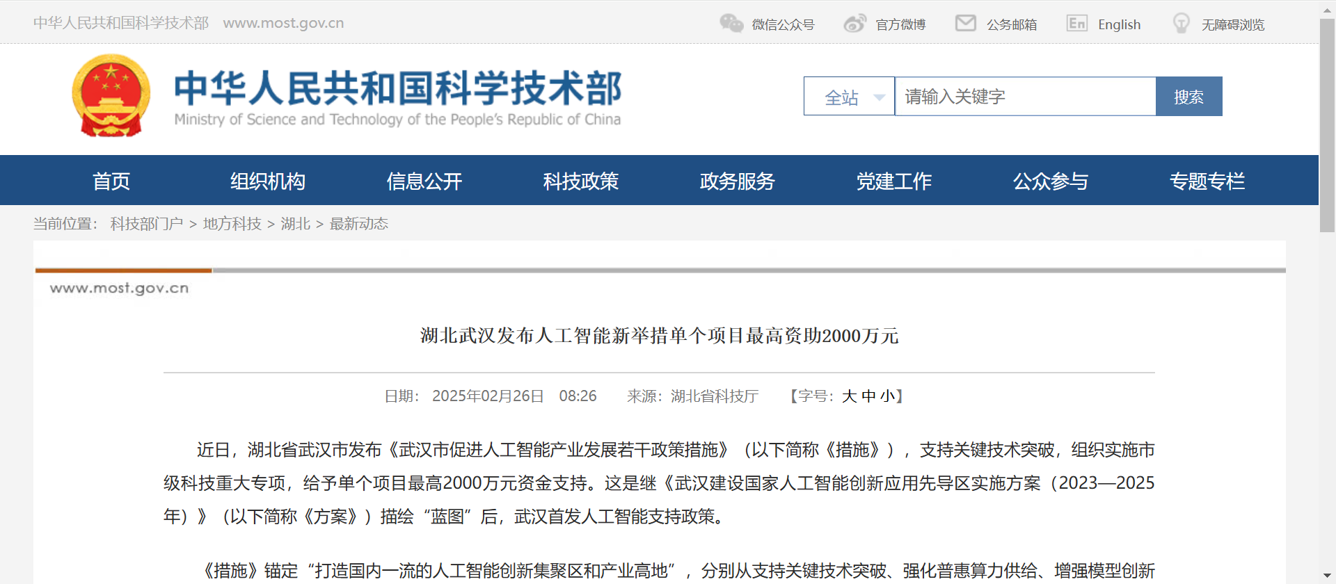 湖北省武汉市近日发布《武汉市促进人工智能产业发展若干政策措施》(以下简称《措施》),支持关键技术突破,组织实施市级科技重大专项,给予单个项目最高2000万元资金支持。这是继《武汉建设国家人工智能创新应用先导区实施方案(2023—2025年)》(以下简称《方案》)描绘“蓝图”后,武汉首发人工智能支持政策。