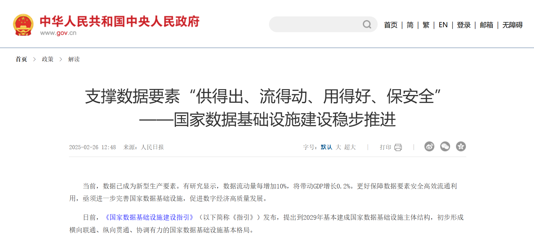 日前,《国家数据基础设施建设指引》(以下简称《指引》)发布,提出到2029年基本建成国家数据基础设施主体结构,初步形成横向联通、纵向贯通、协调有力的国家数据基础设施基本格局。