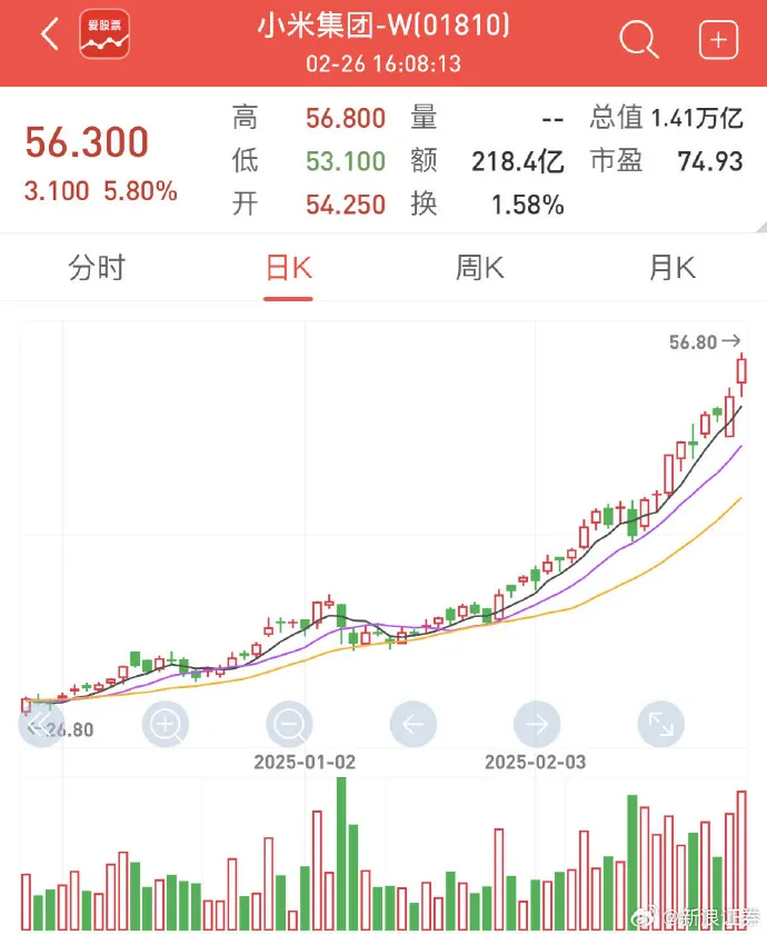 2月27日,小米股价今日盘中一度涨超4%,这一强势表现不仅刷新了小米集团股价的历史纪录,也使其创始人雷军的财富水涨船高,成功超越农夫山泉创始人钟睒睒,成为中国新首富。