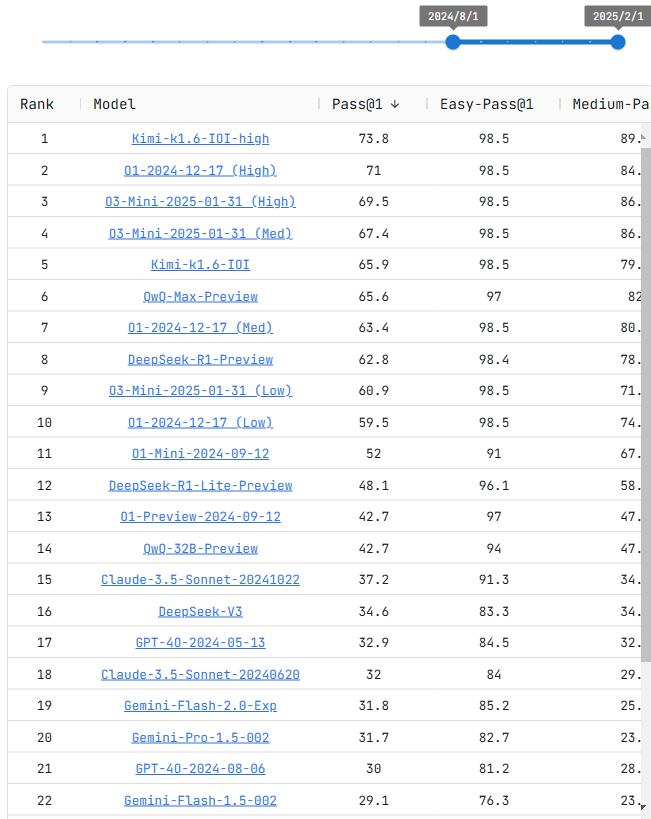 Kimi 最新模型 k1.6 曝光,编程能力超越 GPT o3