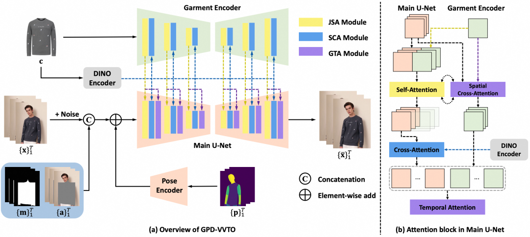通过这一方案的应用,不仅提升了人物形象在视觉上的多样性,还增强了其在娱乐和商业应用中的吸引力和互动性。这为用户提供了一种全新的体验方式,使人物视频更加生动和真实。GPD-VVTO 方案在视频级换衣技术中展现出了卓越的能力,能够生成高质量、自然且一致的换衣效果。这对于提升人物视频的多样性和用户体验具有重要意义,并为进一步拓展其应用领域奠定了坚实基础。