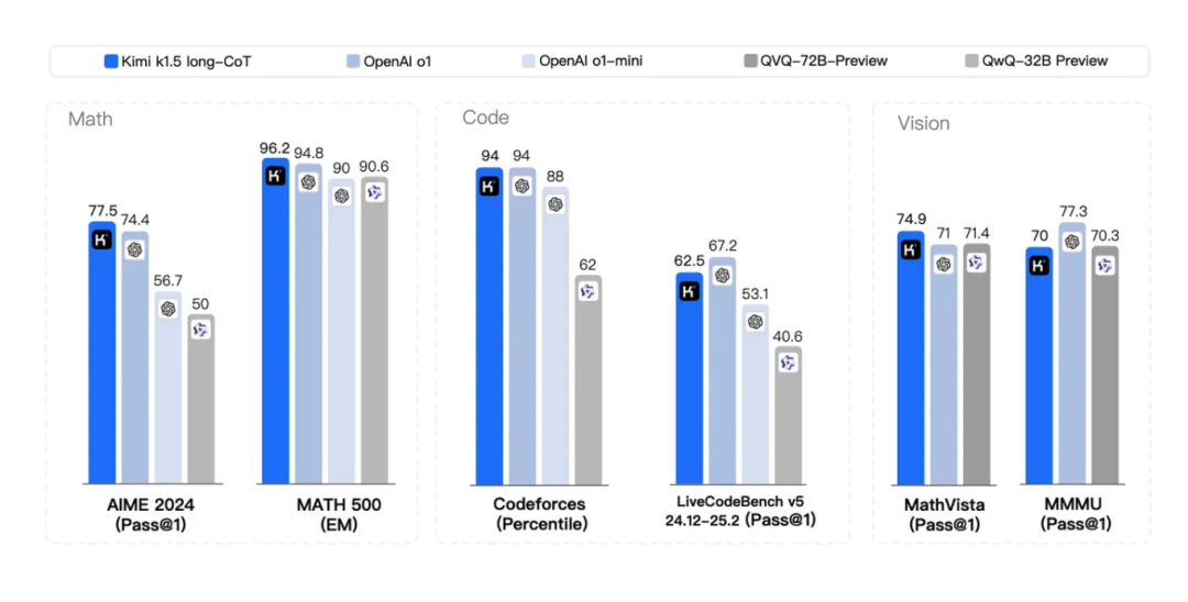 - 训练与推理搜索范式革新:不同于 o1 宣称的推理阶段搜索机制(inference time search),R1 与 k1.5 模型转向更高效的预训练强化学习路径。这些模型能在训练过程中习得隐式搜索策略,从而避免在推理阶段进行复杂搜索。