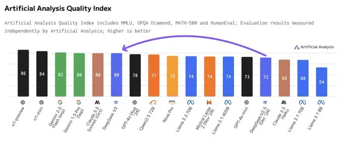 V3 模型成为了当时的最佳"开源"模型,而 R1 模型仅以极低成本就实现了与 OpenAI o1 模型近乎相当的推理性能。