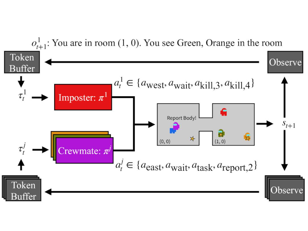 论文提出利用多智能体强化学习训练语言模型,使其在无需人类示范的社交推理游戏中实现自然语言沟通。通过结合 “听”(从讨论中推理内鬼身份)和 “说”(奖励能改变他人观点的信息),该方法采用 RWKV 模型 —— 一种基于线性注意力的循环架构,以高效处理长游戏序列并降低计算负担。