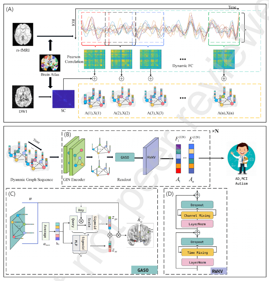 论文提出了用于脑部疾病诊断的 ET_MGNN 模型。该模型整合了多模态脑网络信息,并使用 RWKV 进行动态序列建模。通过融合结构和功能连接性,该模型能够捕捉复杂的脑网络特征。