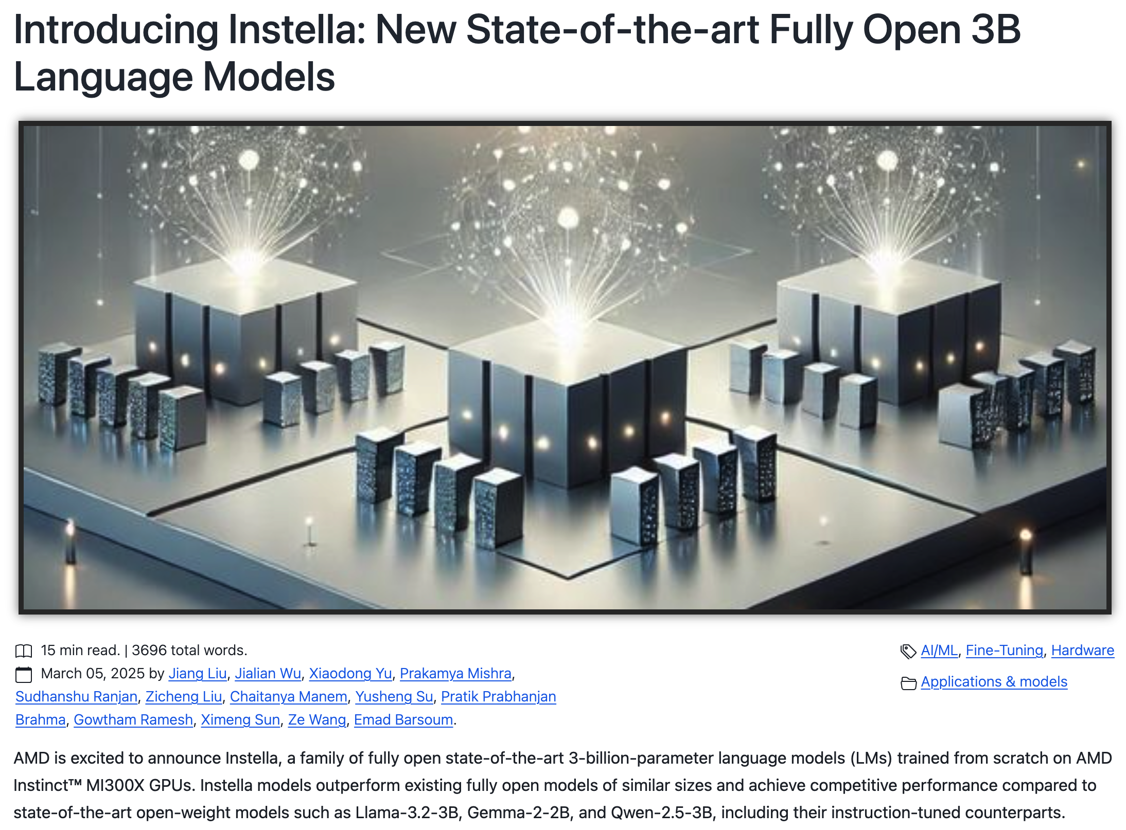 AMD 发布完全开源的 3B 参数语言模型 Instella