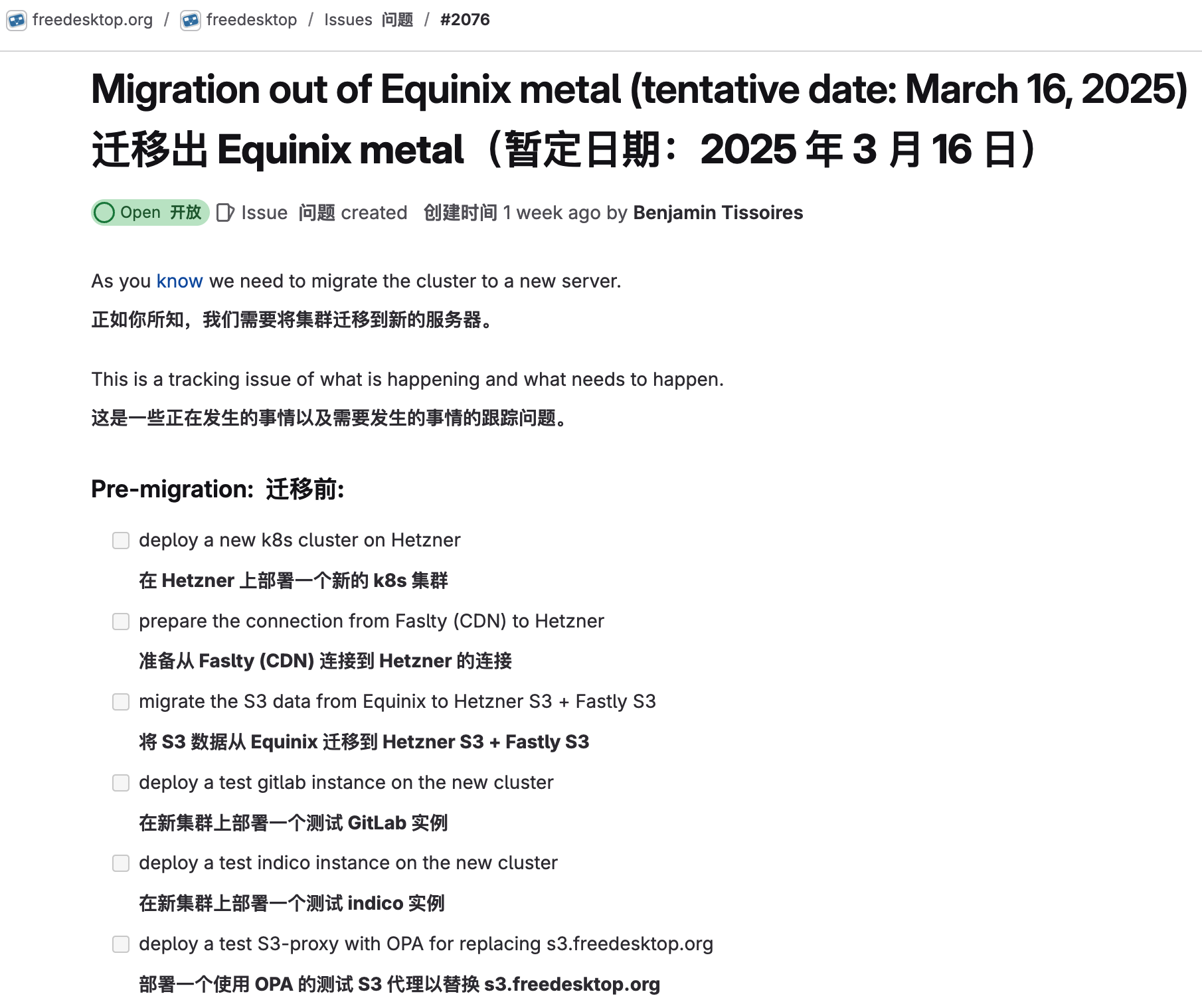 因迁移云供应商,FreeDesktop.org 自建的 GitLab 服务将停机一周