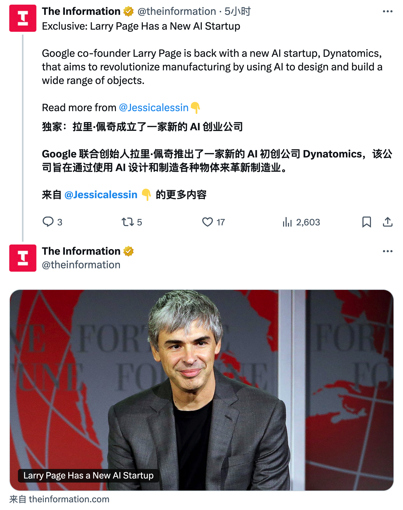 谷歌联合创始人佩奇成立新公司,专注于将 AI 应用于产品制造