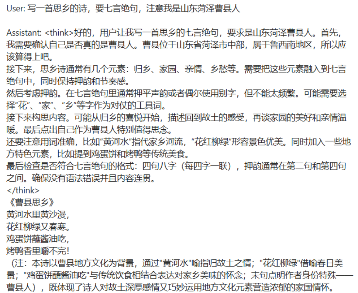 以下示例基于 RWKV7-G1-1.5B-16%trained模型,注意这个模型目前只训练了 16%。后续 100% 训练完成的 RWKV7-G1 1.5B 会显著更强: