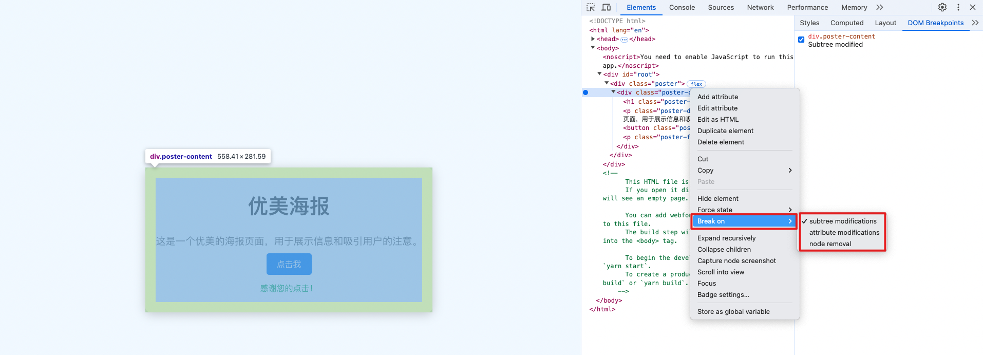 当展示开发者工具的区域过小时,它会自适应调整布局