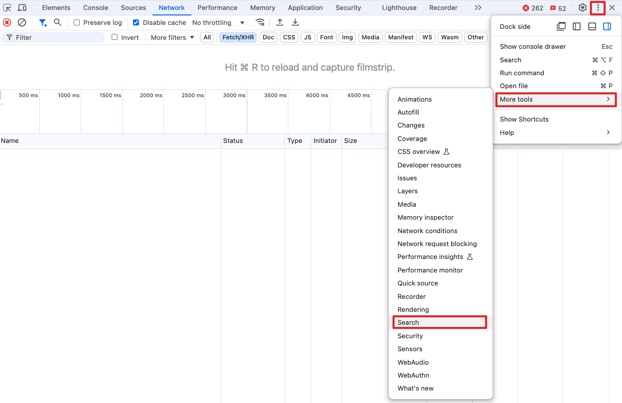 当我们有对应的代码关键词,想打开它对应的文件。chrome提拱了一个全局搜索代码的功能,我们可以打开对应的search面板