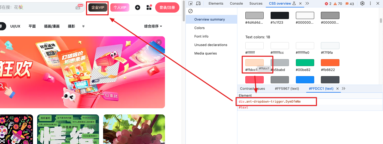 比如我们拿花瓣这个网站做例子,我们打开开发者工具,开启CSS Overview面板
