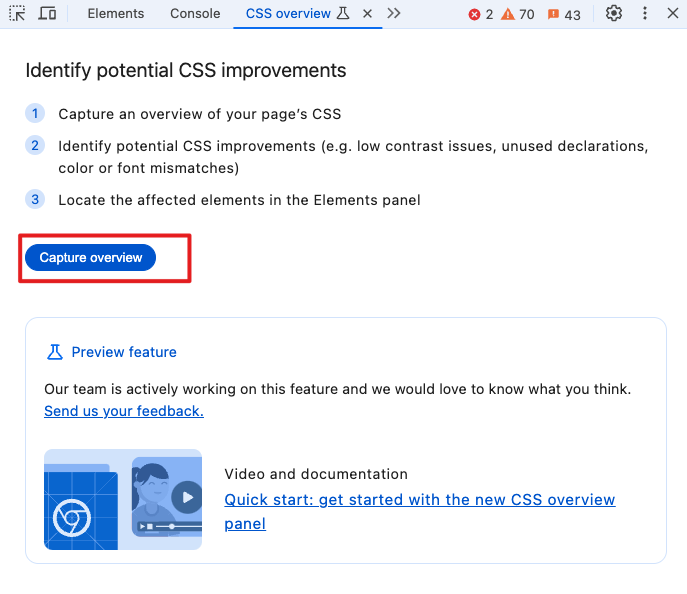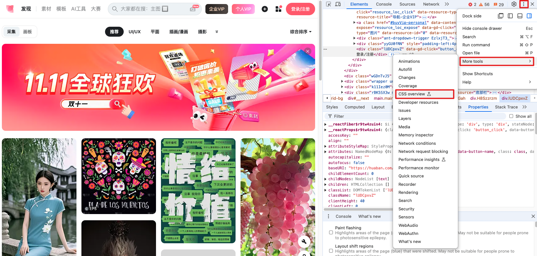 当我们看到一些优秀的网站的时候,我们想快速查看借鉴该网站样式信息的时候,我们可以借助CSS Overview这个功能快速得到相关信息,非常好用有趣