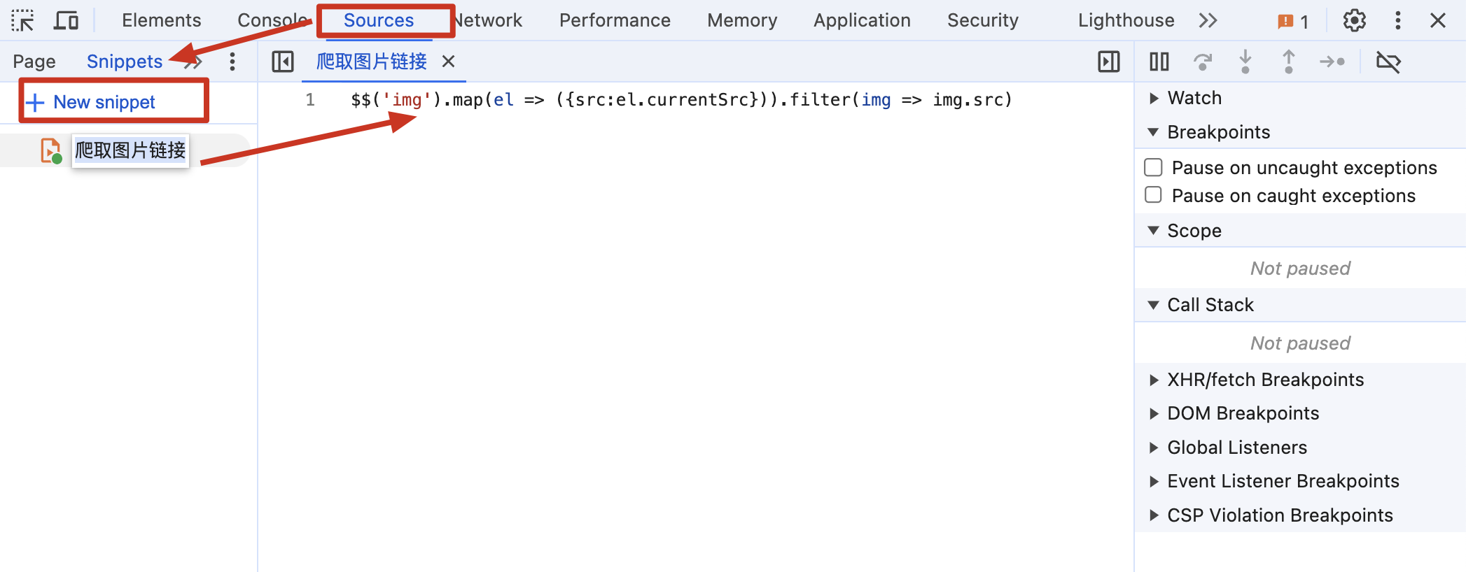 比如我们想要获取当前页面的所有图片链接,我们可以将这段代码存储起来