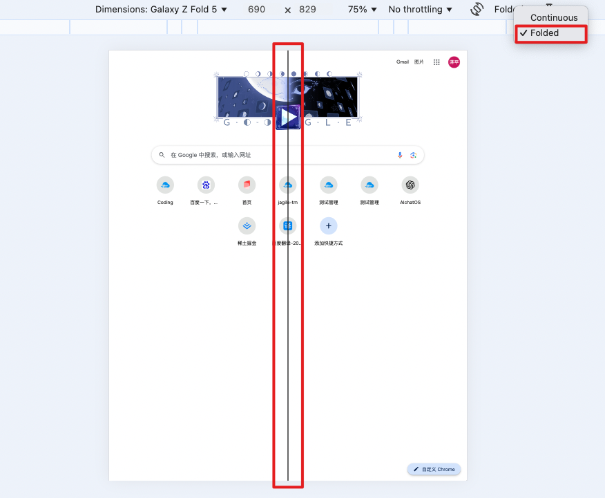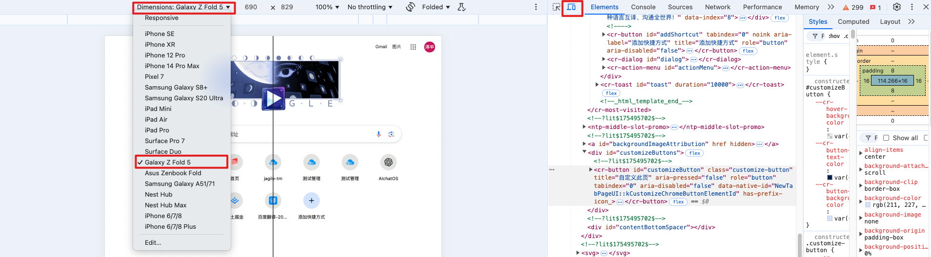 如果我们的开发场景中,需要适配折叠屏手机,比如像下面的三星Galaxy Z Fold5,那么我们的chrome也可以派上用场