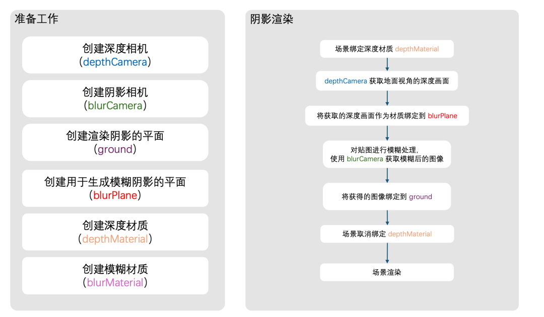 全局阴影的实现主要依赖于 three.js 提供的 shadowMap。只需简单几步------在 WebGLRenderer 中启用 shadowMap 功能、定义产生阴影的光源以及设定哪些物体负责投射或接收阴影------即可轻松完成设置。