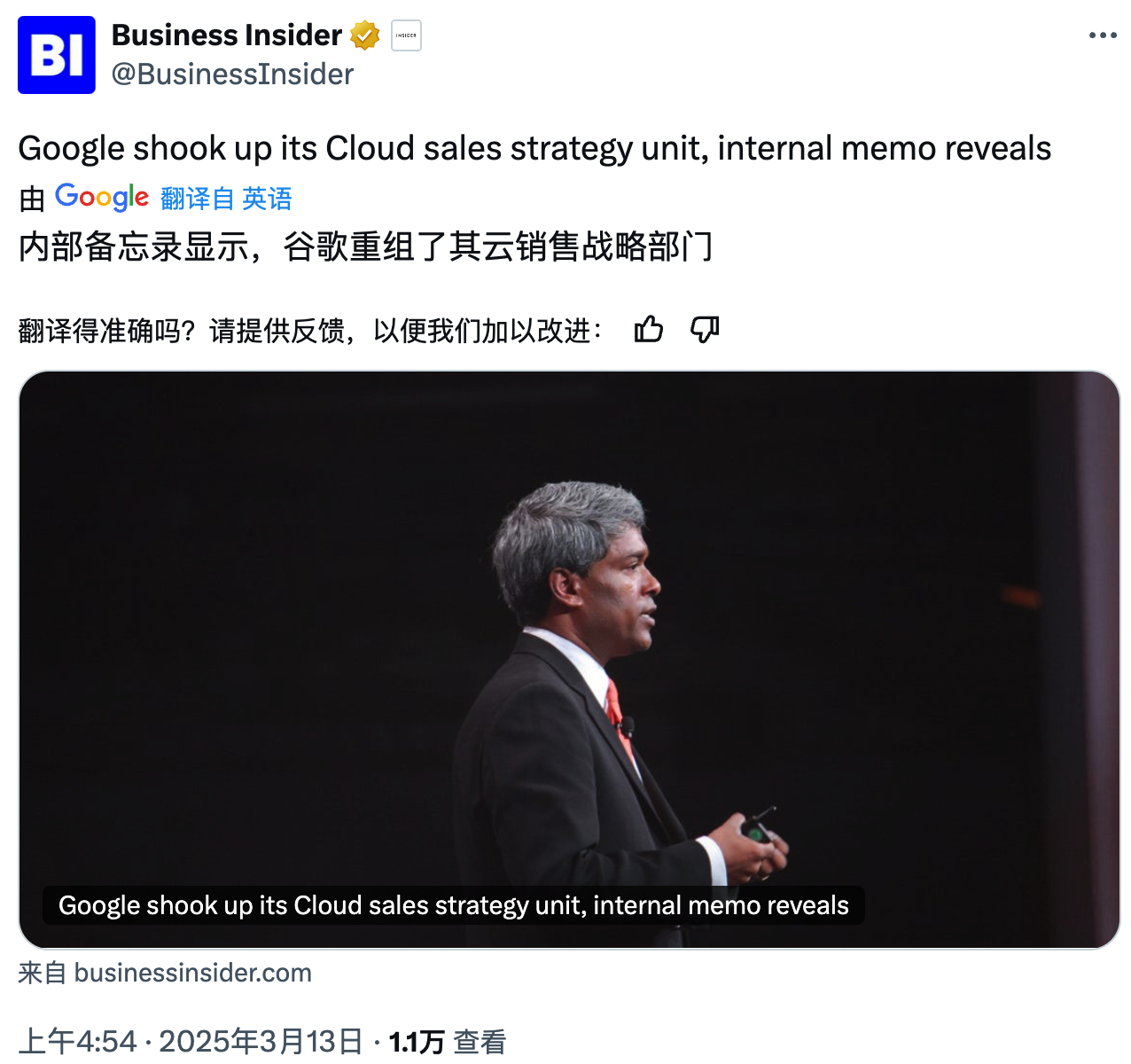 近两年来,谷歌持续精简内部架构以提升效率。克鲁佩茨基表示,此次重组将核心业务服务部门整合为由谷歌云董事总经理阿比·夏尔马领导的单一团队,以“提升销售效率”。同时,在新任谷歌云COO弗朗西斯·德索萨麾下成立了中央“交易管理”团队。