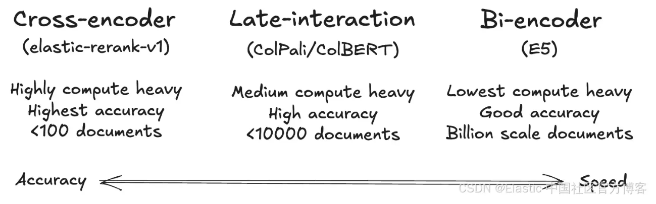 对于像 ColBERT 这样的 late-interaction 模型,它处理的主要是文本数据(像大多数 cross-encoders,例如 elastic-rerank-v1),则决策可能会更多地倾向于使用 cross-encoder 来利用磁盘节省和系统简化的优势。