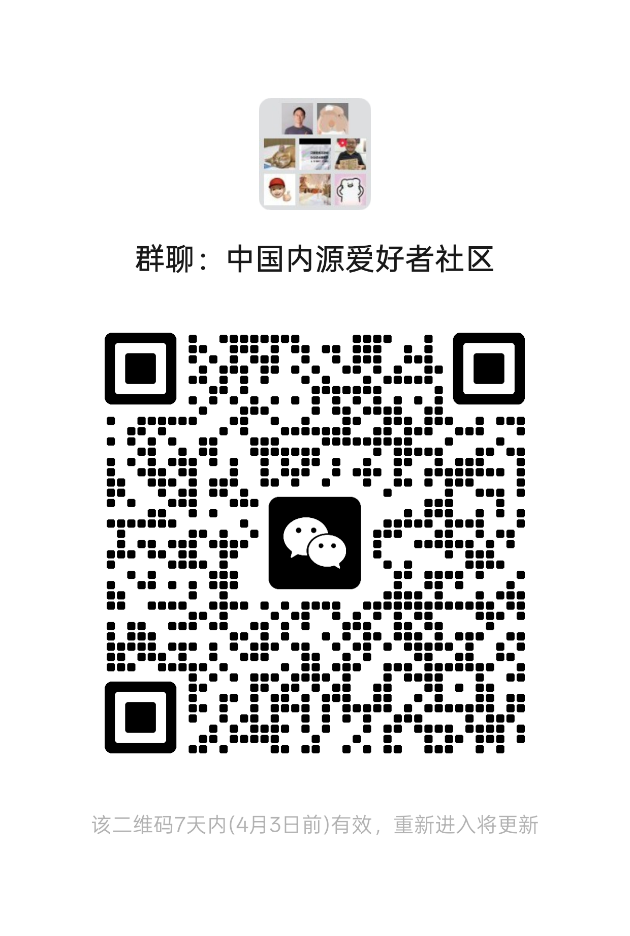 - 在国内组建中国内源爱好者社区,二维码如下,欢迎扫码加入。
