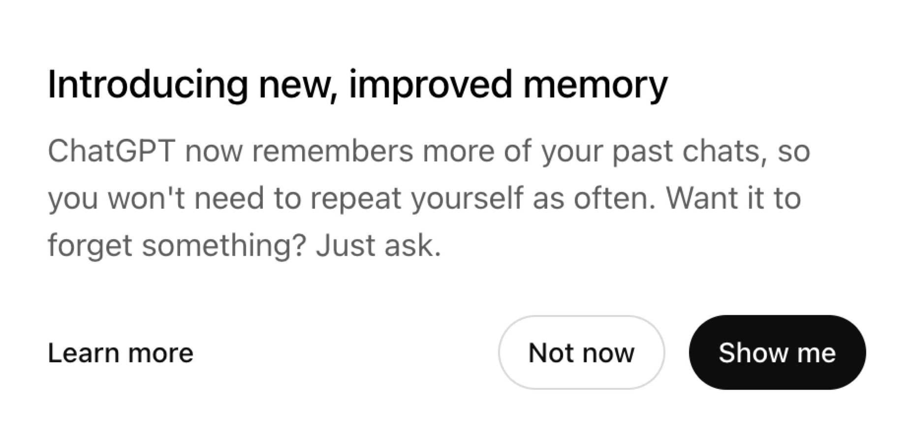 “ChatGPT 现在能记住更多你的历史对话,不用你一遍遍重复自己了。”