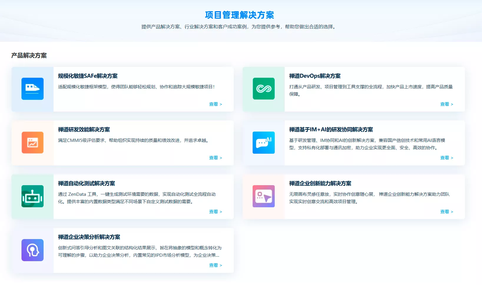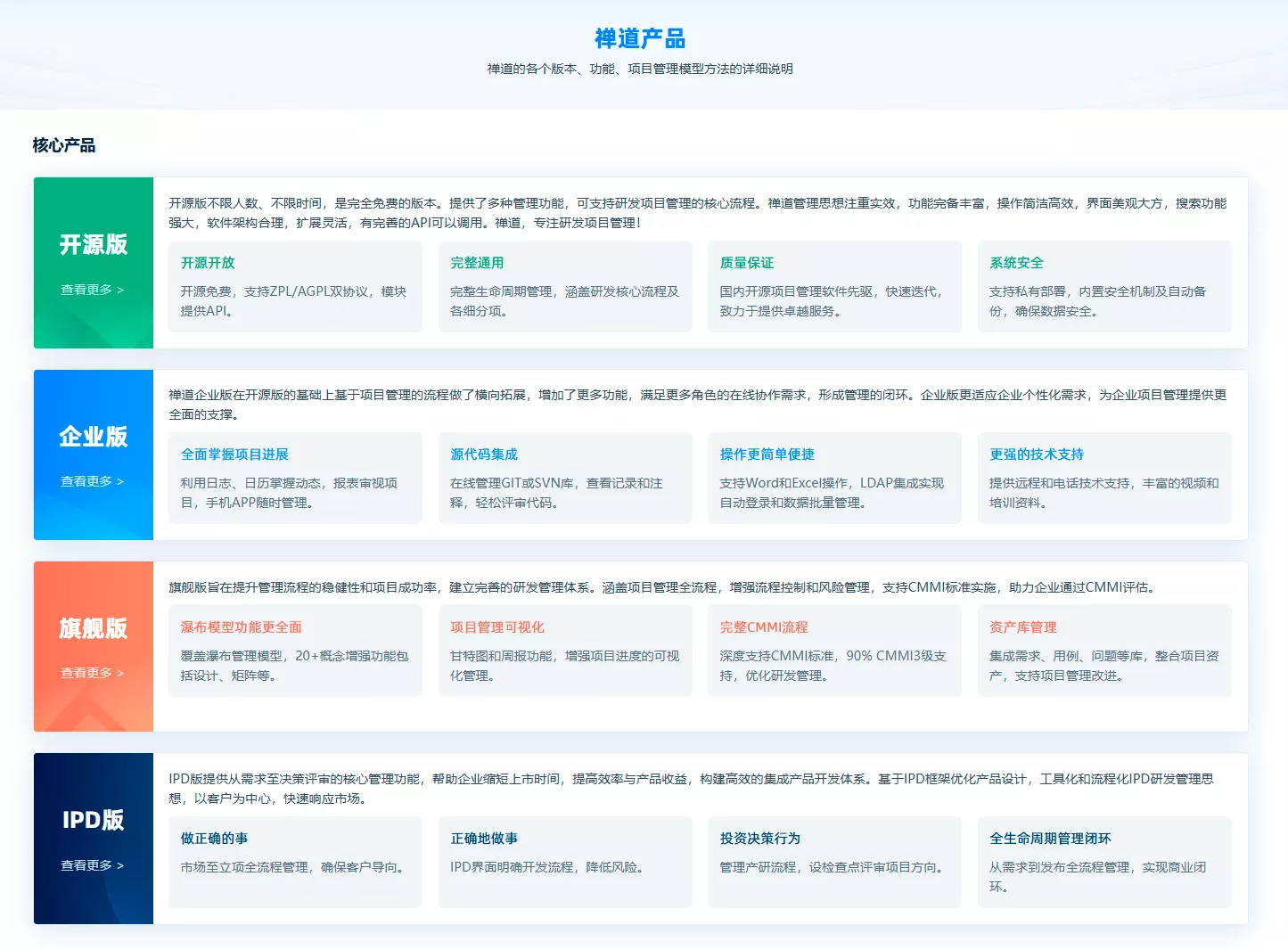 禅道通过全栈式功能矩阵、多产品体系与场景化解决方案,以更懂中国企业的产品设计,推动组织管理效能的持续进化,助力企业实现研发流程标准化和质量管控体系化。