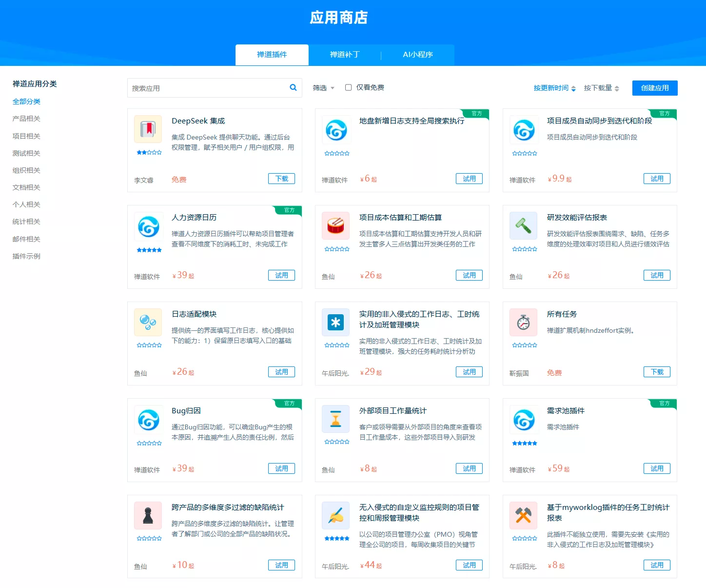此外禅道还提供丰富的插件,用户可以根据自己的使用场景和实际需求,选择需要的适配插件,最大限度压缩企业项目管理工具的运营成本,让企业的每一分钱都花在刀刃上。