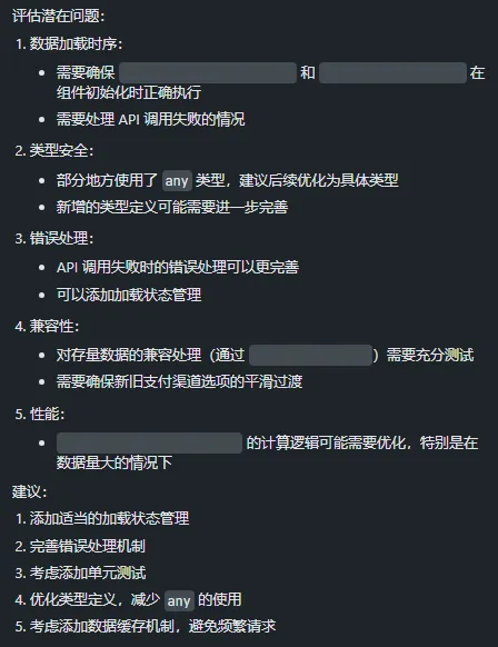 | 效果 | 在列举出每个文件的改动意图后,会告知潜在问题和修改意见。![]() |