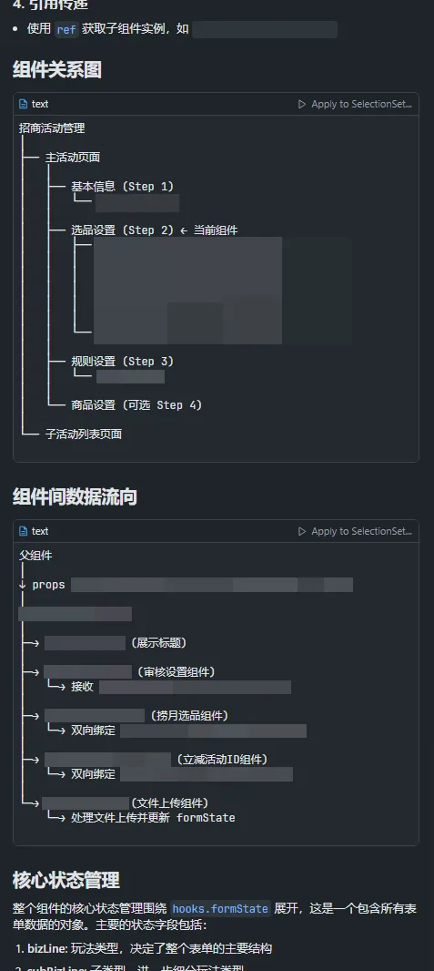 | 提示词参考 | 当前功能如何运作,用户交互有哪些路径,具体数据流向是怎样的,请整理成 mermaid 时序图。 | 当前代码如何组织,核心模块有哪些,组件间如何通信,梳理组件关系图。 | 梳理当前表单字段的显隐关系、联动逻辑以及数据源。 |