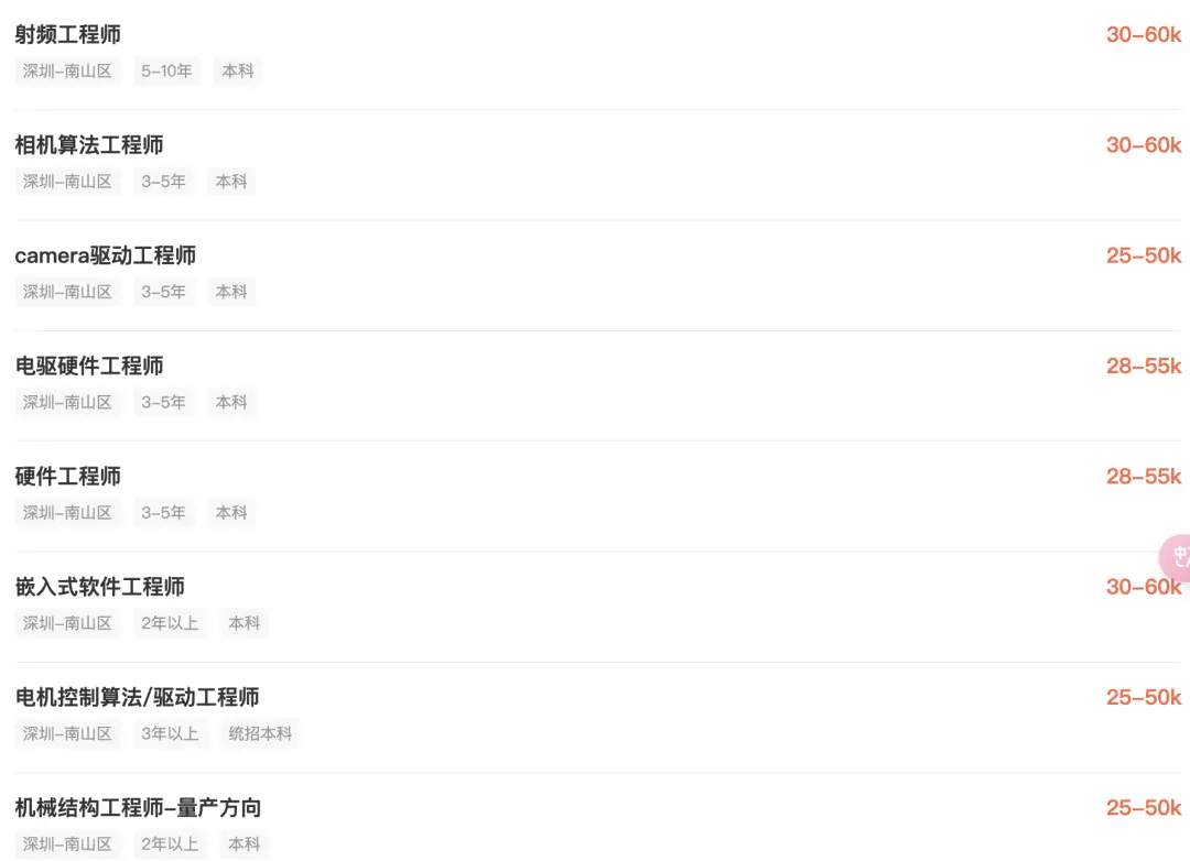 在招聘网站上可以看到,妙动目前在招多个技术岗位,技术栈包括嵌入式、电控电驱算法、相机算法等等,工作地点位于深圳南山,这里也是大疆总部所在地。