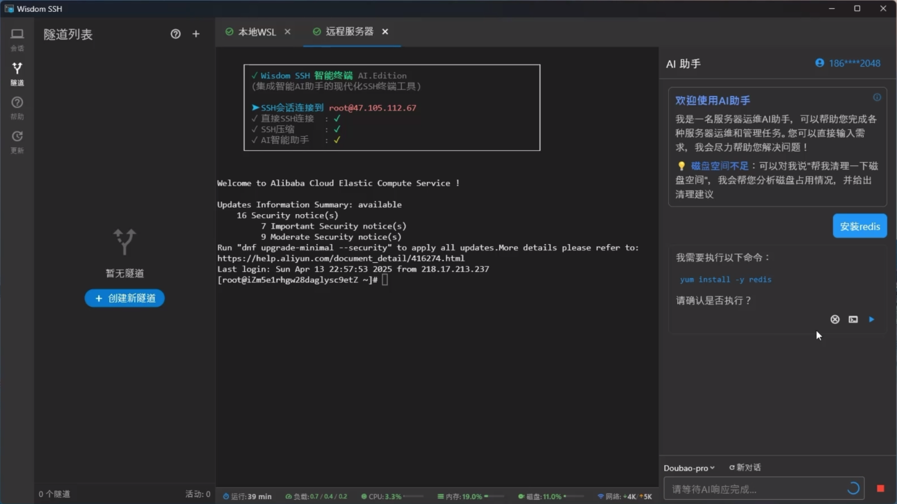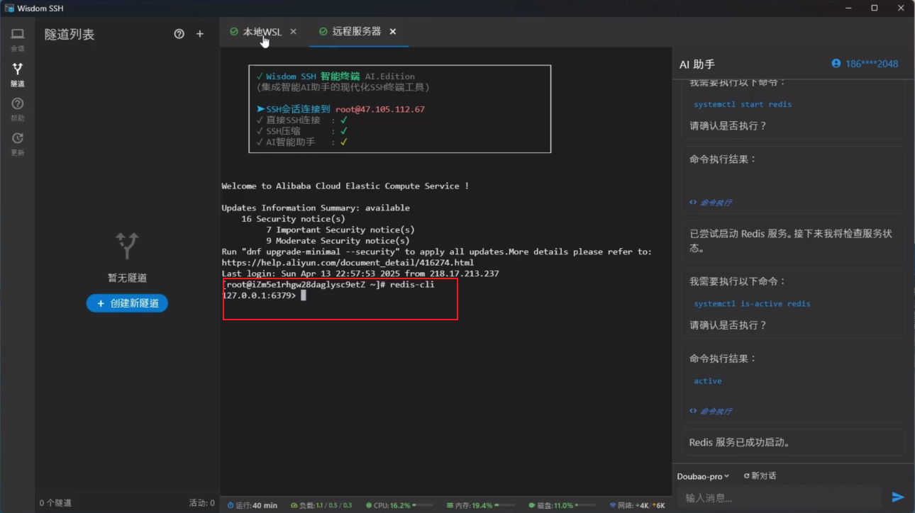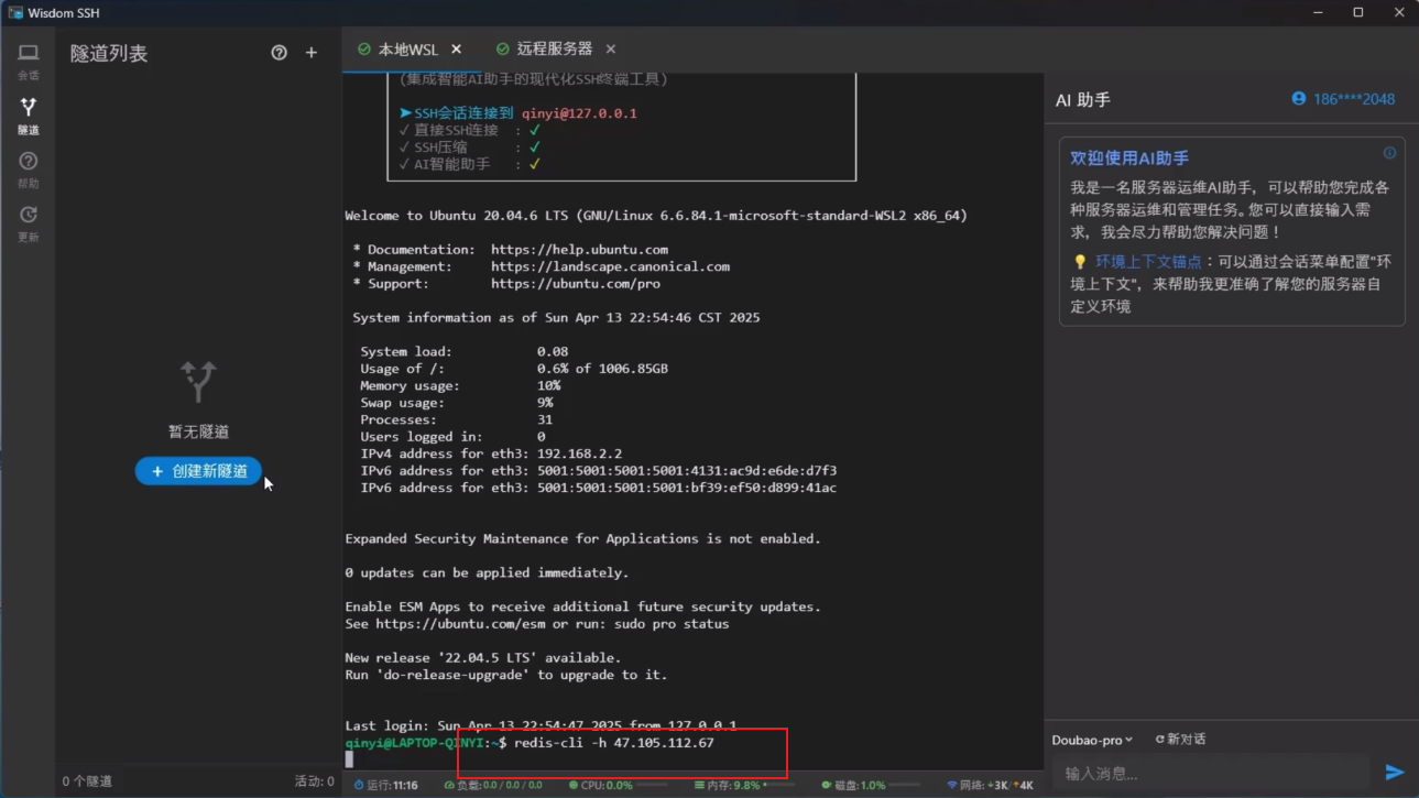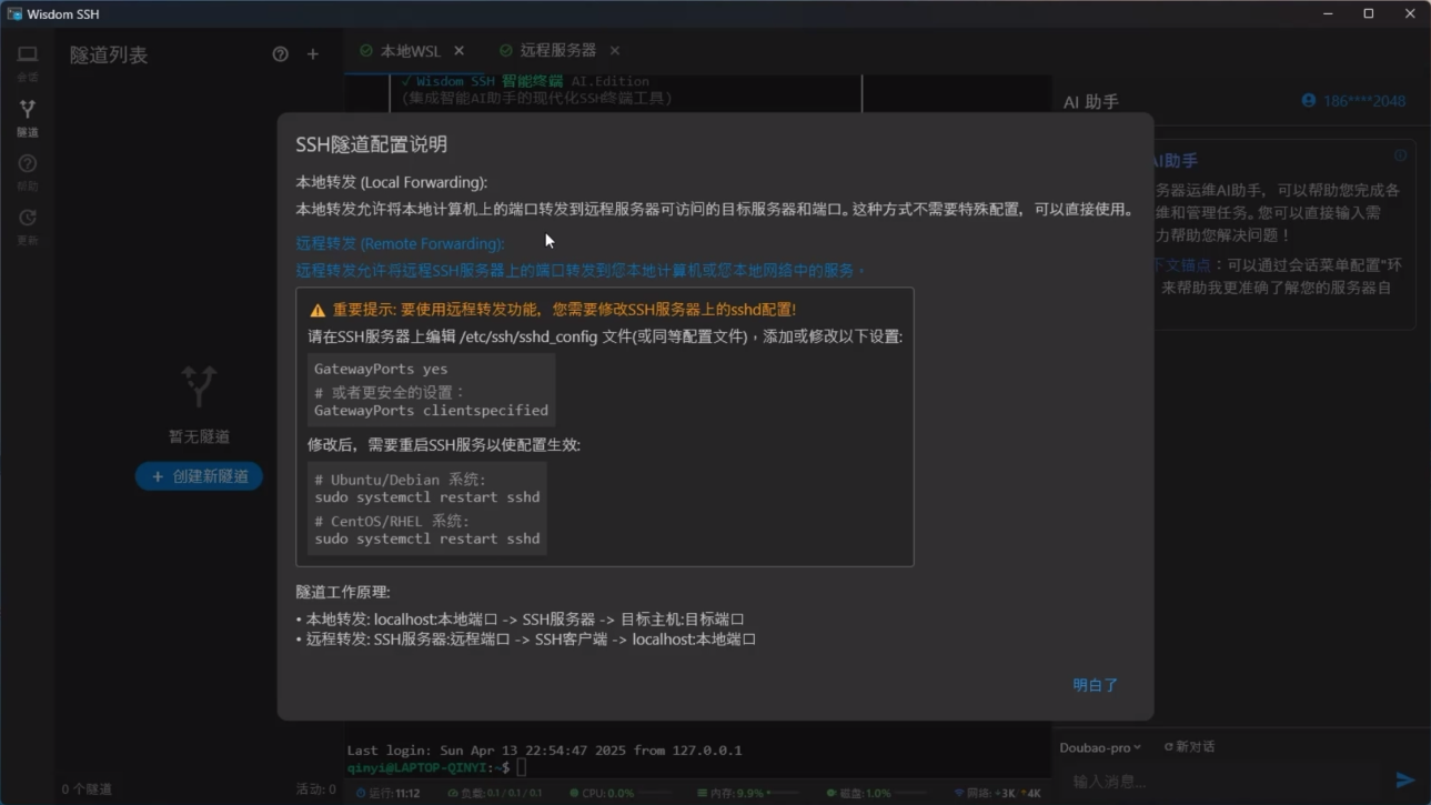 Wisdom SSH 1.3.0 更新:AI 运维解锁隧道转发功能,本地访问服务器内网Redis