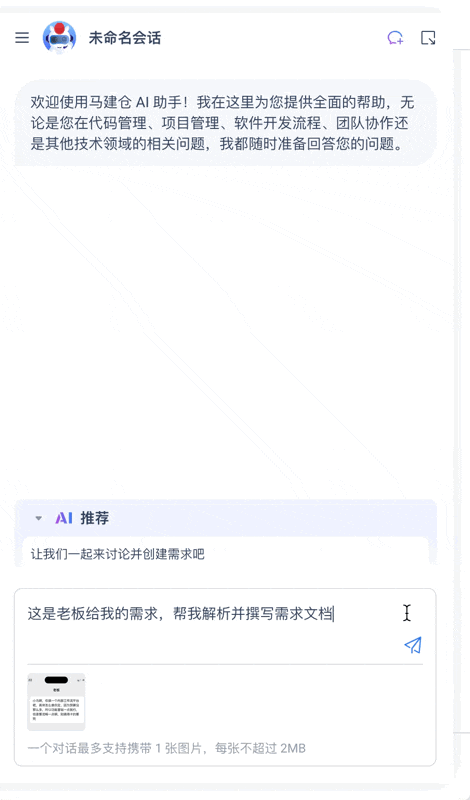 ▲在多模态输入的加持下,马建仓 AI 助手极大简化了需求创建流程,同时让输出更自然、信息更完整。