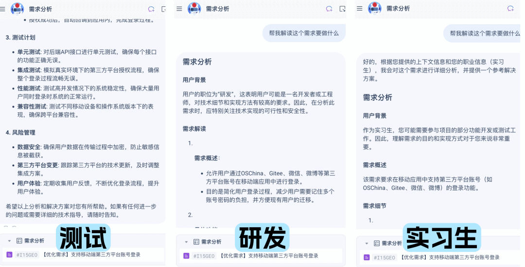 同一条需求,开发可以看到接口重点,测试可以看到验收标准,产品可以看到用户路径——助你快速抓住重点,高效协作。