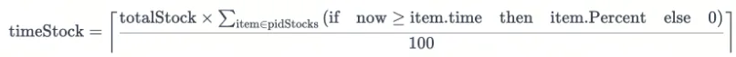 ▪ 当前已释放库存是当前已过时段各个库存的累加。
