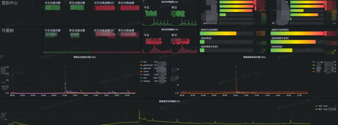 最终这些数据统一接入到增长的监控大盘中,能够清晰地看到各个接入方实时的访问数据、兑换数量及面额等。