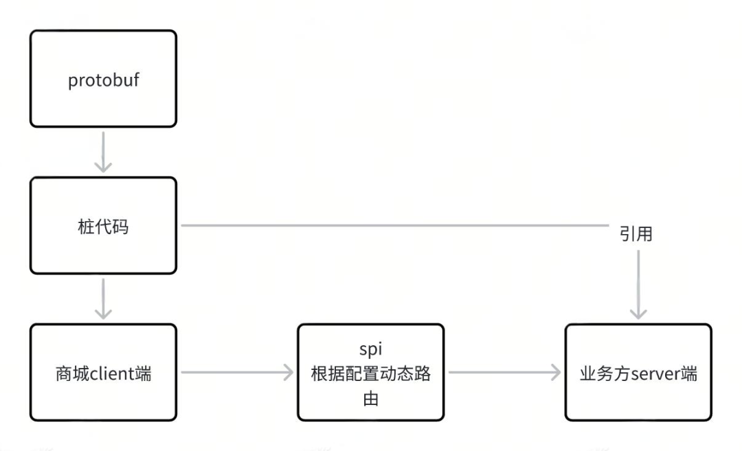 为了减少商城侧的开发成本,我们借鉴了Java的SPI(Service Provider Interface)概念,对RPC调用进行了优化。具体实现如下: