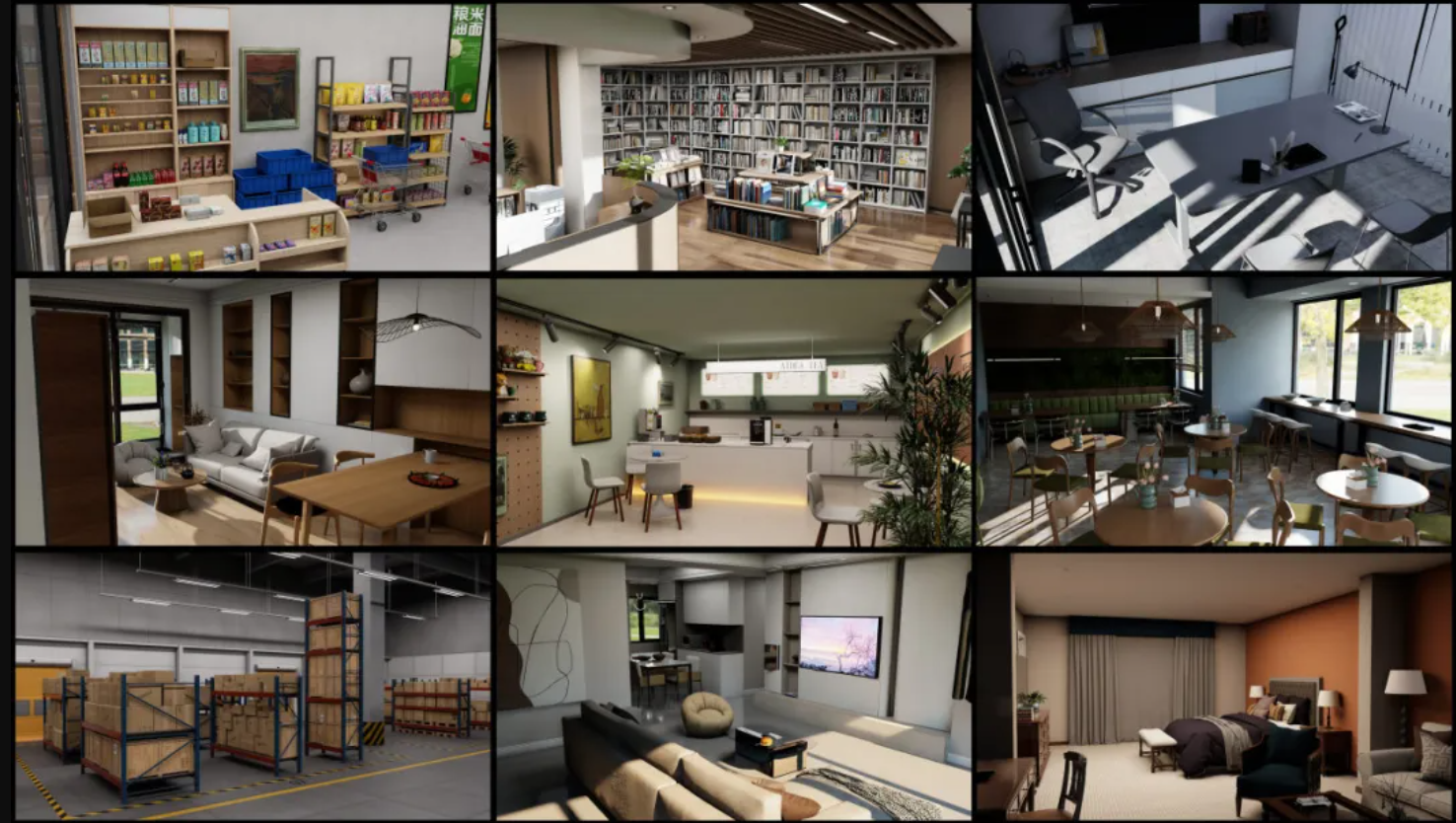 Genie Sim构建了大规模的高精度具身智能三维资产库,形成了涵盖丰富物体、场景及机器人模型的完整仿真体系。所有资产均采用人工精细建模、三维重建与生成式AI(AIGC)等技术打造,在确保高度真实性的同时兼顾种类多样性和资产生成效率,全面满足机器人复杂操作任务的仿真评测需求。