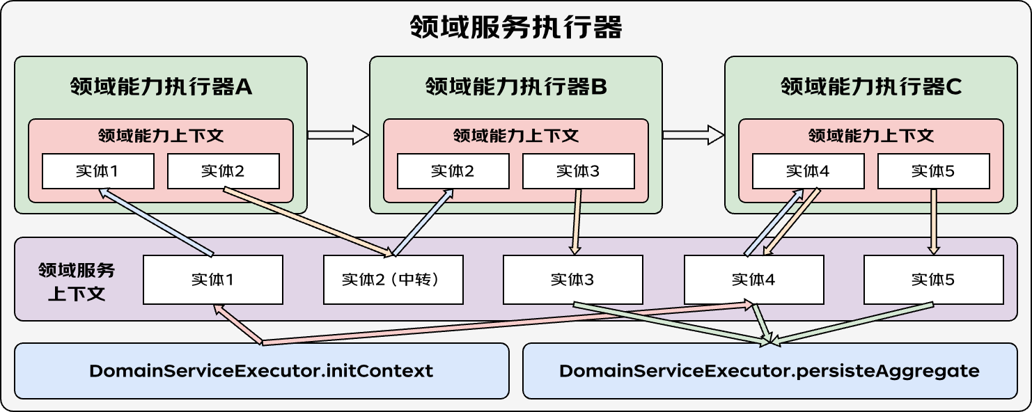 能力内主要负责实现具体的业务规则,并对聚合根中相关属性进行设置/修改,一个领域服务编排的所有领域能力执行完成之后,就能获取一个完整的、全新的聚合根对象。