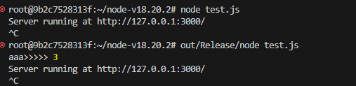 如图所示,先用了安装在环境中的普通版本 node,运行 test.js,没有额外的打印信息;然后用外置标准库版本的 node 运行 test.js,打印出了预期的信息,而我们上一步改过代码后,并未重新构建 node。说明此时 node 运行,使用的 lib 代码确实是外置的。
