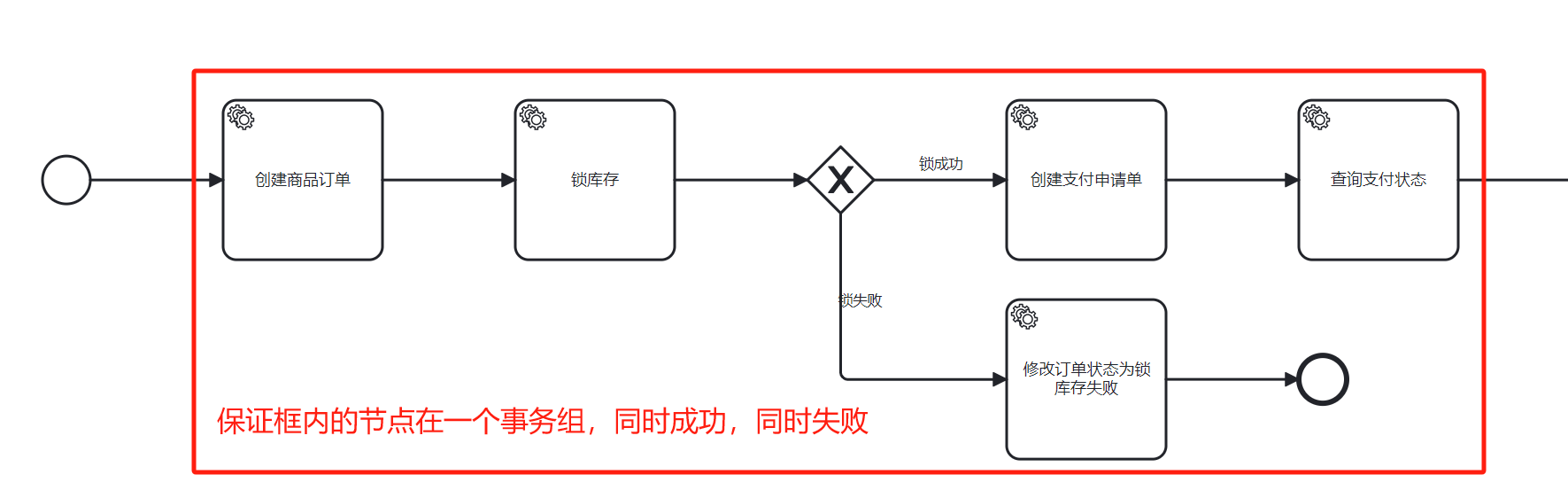保证业务流程中一组节点执行的原子性,同时成功,同时失败