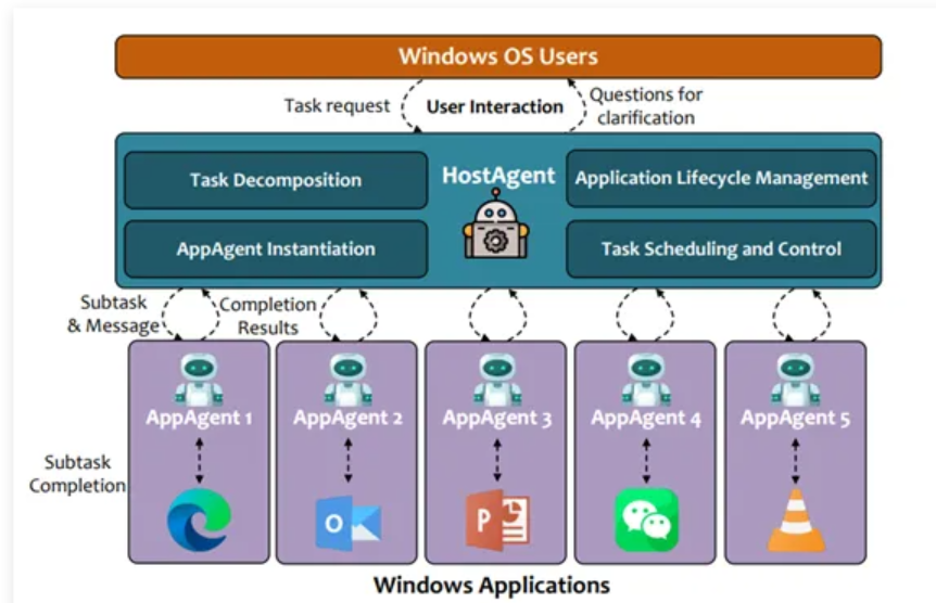 UFO² 的核心控制组件 HostAgent 负责解析用户指令、管理应用程序生命周期和协调 AppAgents 的执行。当用户通过自然语言发出自动化指令时,HostAgent 会将任务分解为一系列子任务,并将其分配给相应的 AppAgents 执行。