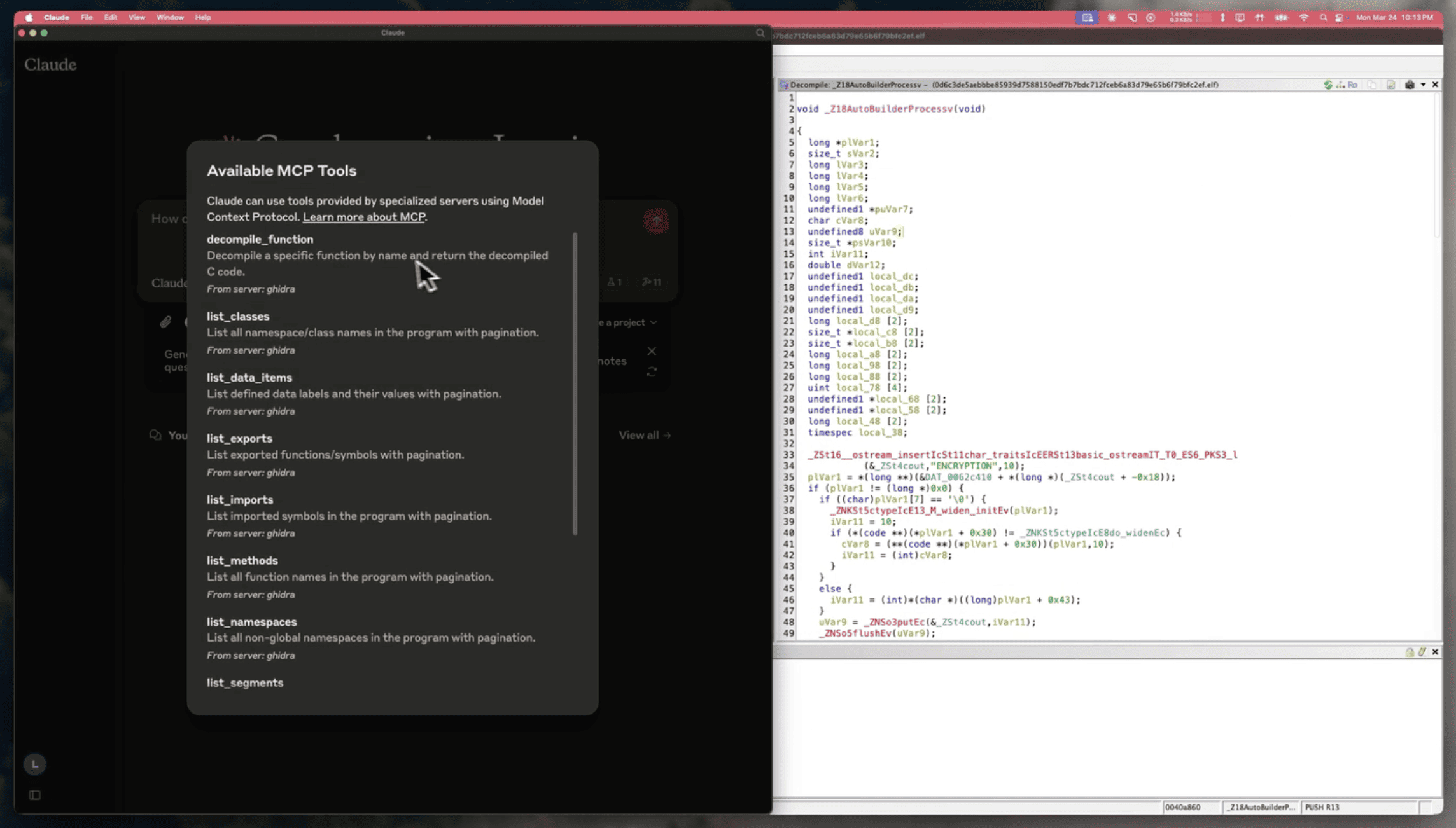 13、GhidraMCP:让 AI 自动操作 Ghidra 进行逆向。该项目是为 Ghidra(知名逆向工具)提供 MCP 支持,实现 AI 自动调用 Ghidra 进行逆向分析。它将 Ghidra 的核心功能(如反编译和二进制分析)以服务形式开放给 MCP 客户端,支持自动重命名方法和数据,列出方法/类等信息,打通了 AI 与逆向分析自动化的通路。