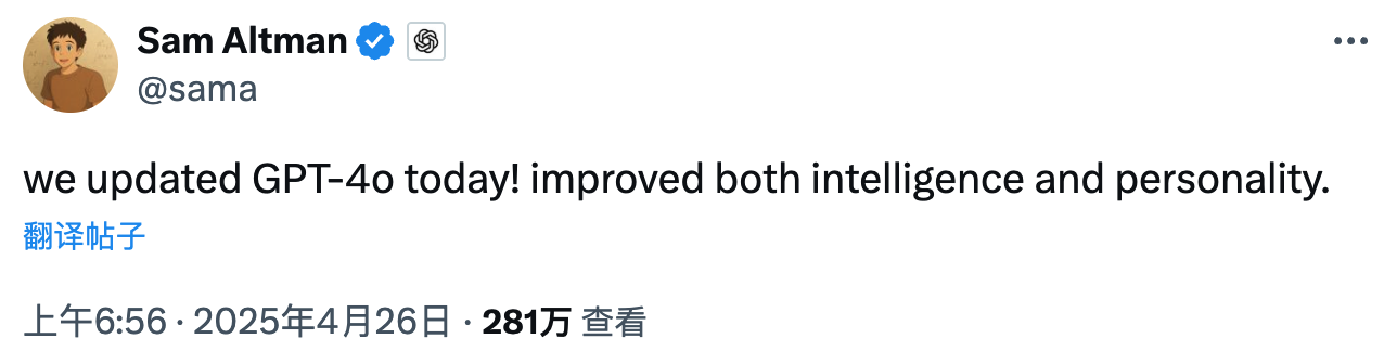 — 萨姆·奥尔特曼 (@sama) 2025 年 4 月 25 日