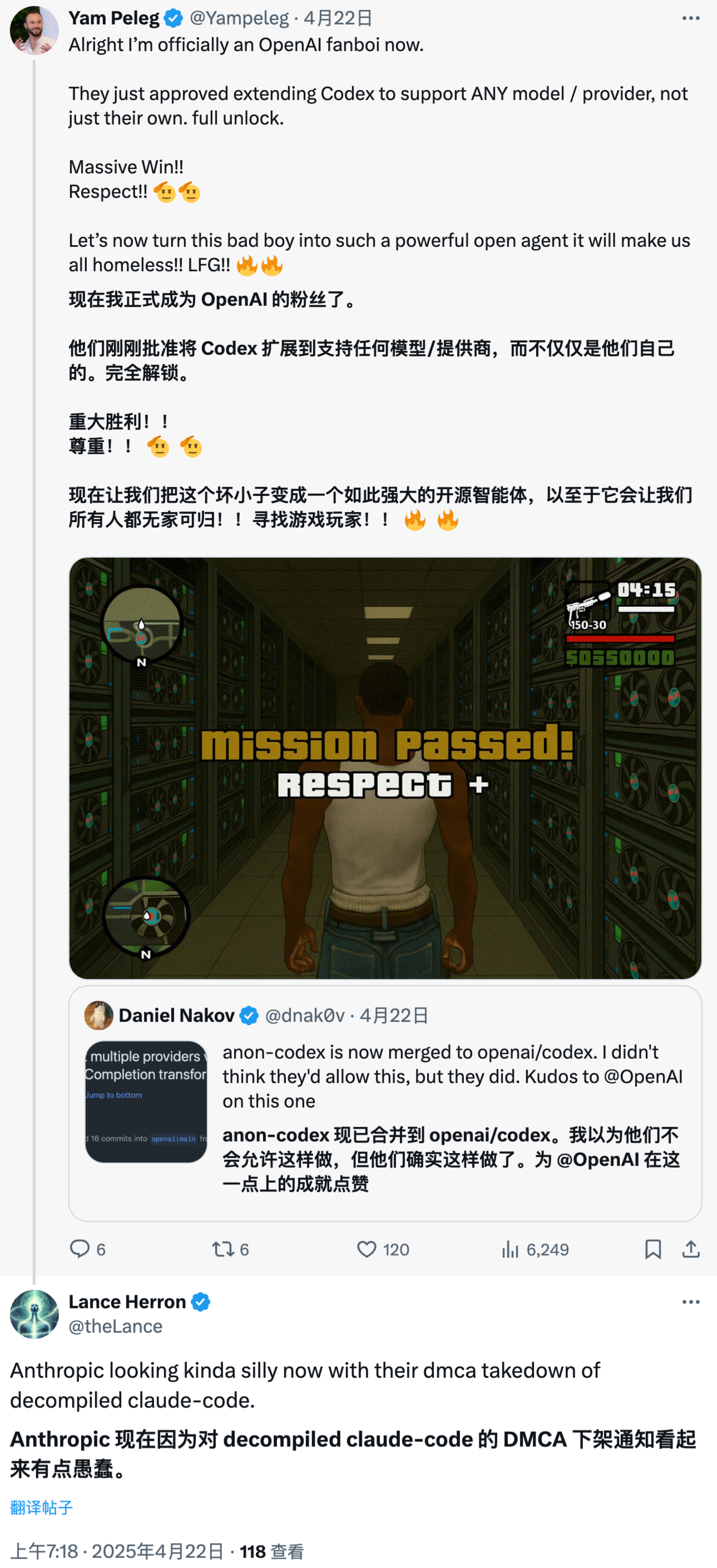 社交媒体上的开发者们对 Anthropic 此举非常不满意,认为这种做法远不如 OpenAI 发布 Codex CLI 时的开放态度。在 Codex CLI 发布后的短短一周内,OpenAI 就将几十条开发者建议纳入了工具的代码库,其中包括一个让 Codex CLI 能调用来自其他竞争者(包括 Anthropic)的 AI 模型的功能。