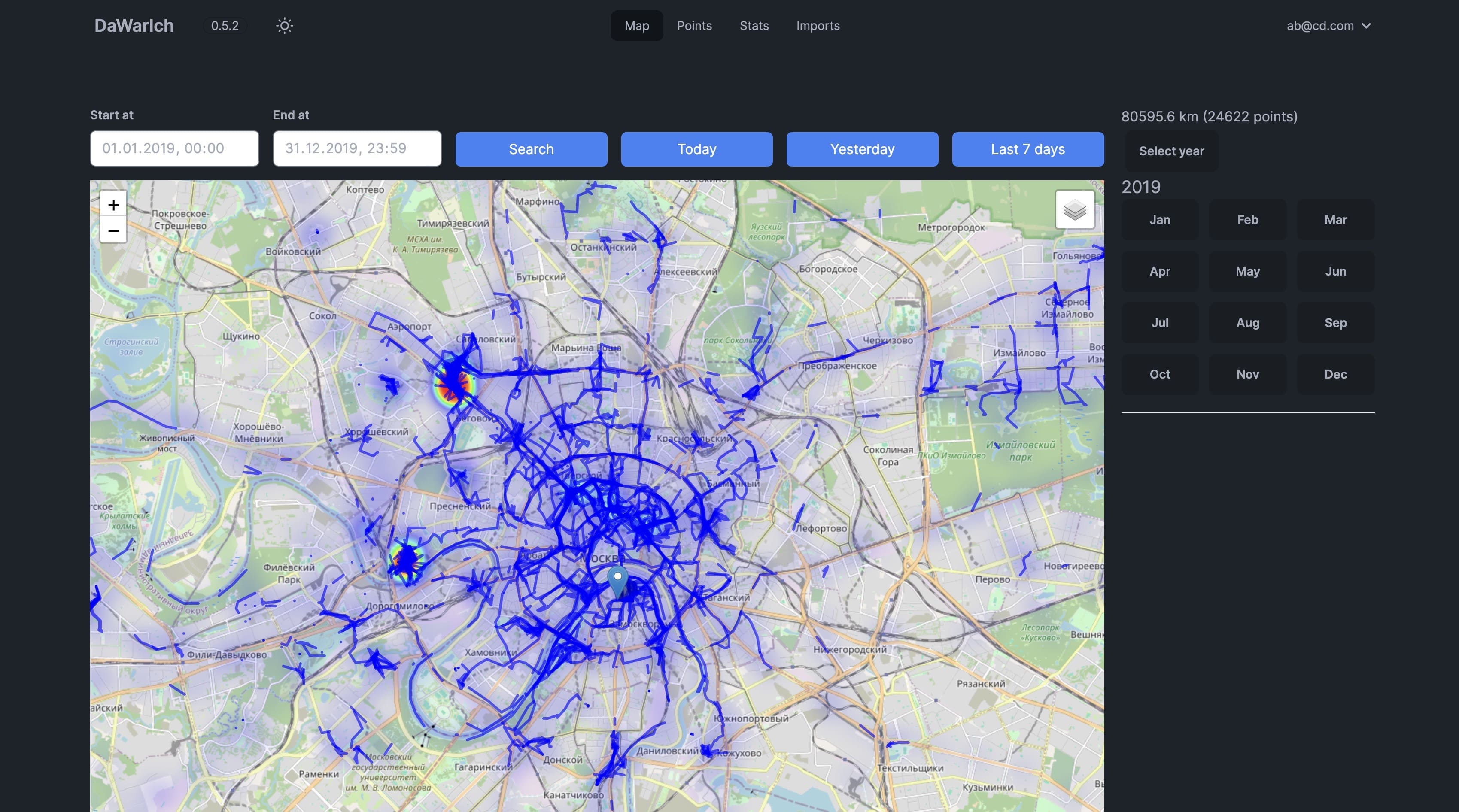 这是一款用 Ruby 开发的自托管位置历史管理平台,可作为 Google 地图时间线的开源替代品。它提供丰富的可视化方式,让用户能够在交互式地图上查看个人位置历史和旅行足迹,支持多种位置数据来源,包括 Google 地图时间线、OwnTracks 以及照片地理信息等。轻松查看走过的国家和城市数量、总行程等地理轨迹。