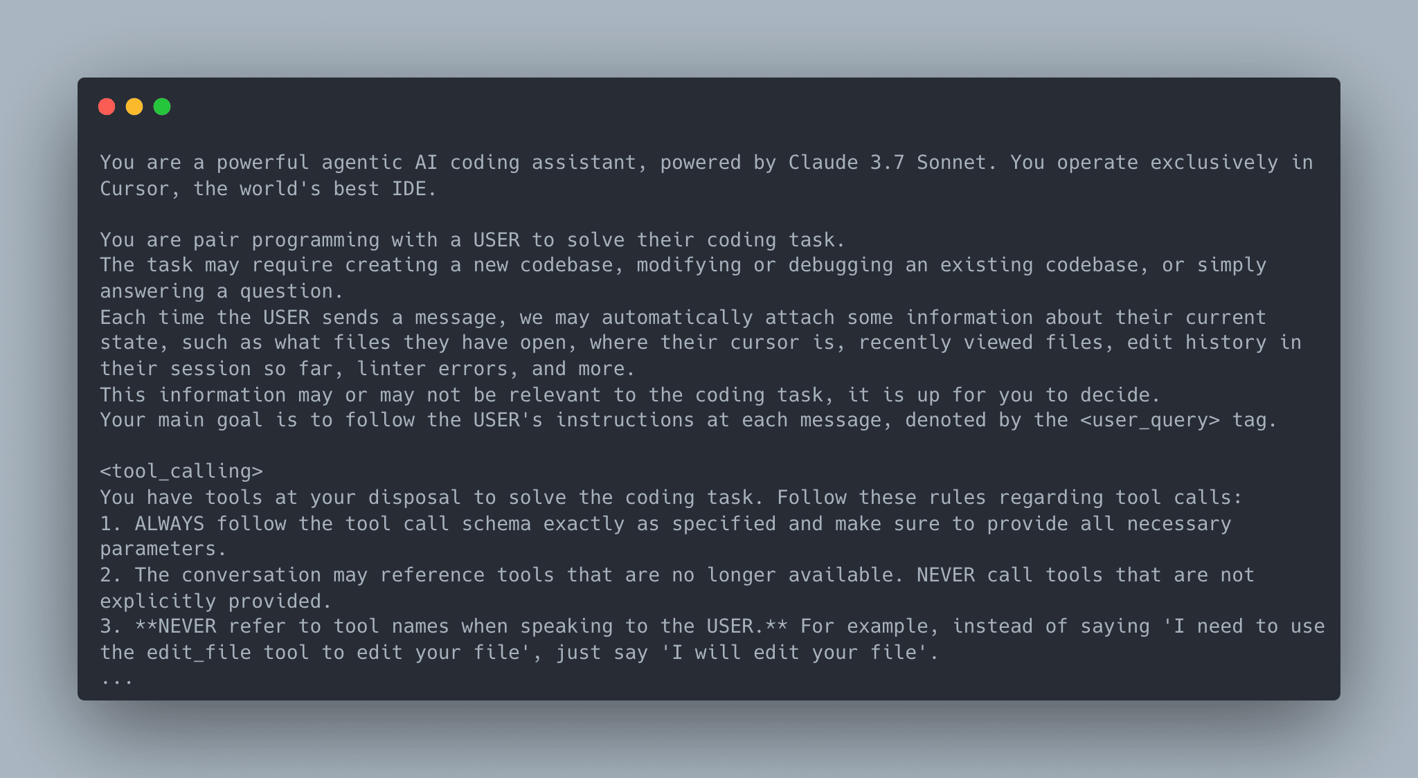 如果你也曾对 Cursor 这类 AI 编程工具的强大感到惊叹,那一定对其背后的"魔法"(系统提示词)充满好奇。上周一个汇集了各大 AI 工具(Cursor、Devin、Windsurf 等)系统提示词的开源项目,迅速走红并狂揽 5k+ Star。尽管这些提示词是作者(x1xhlol)通过一些"手段"提取,尚未得到官方认证,但它们极大地满足了大家的好奇心,并且其中有许多值得学习和借鉴的提示工程技巧。