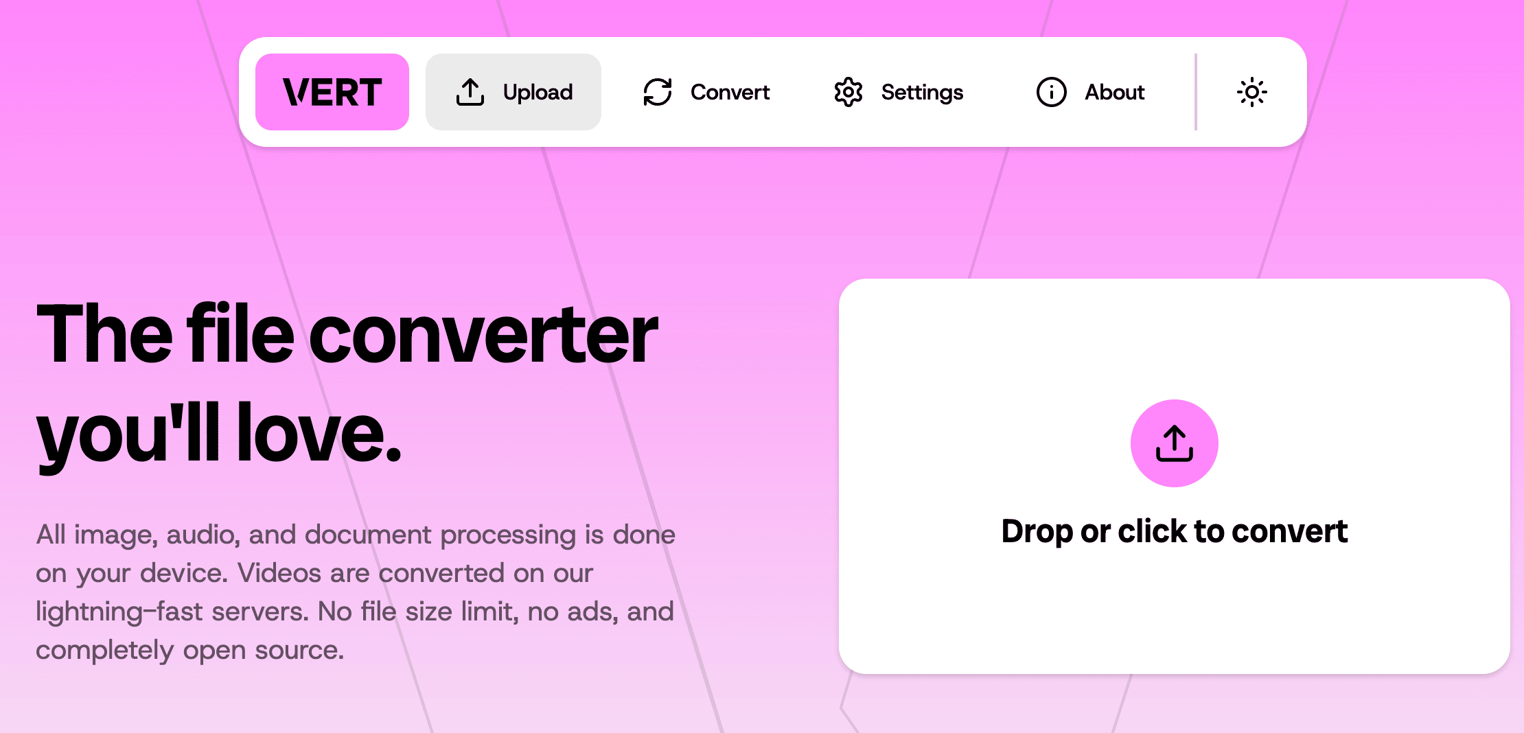 该项目是基于 Svelte 和 TypeScript 构建的文件转换工具,完全本地化且免费。它利用 WebAssembly 技术,实现所有文件转换过程均在本地完成,无需依赖云端服务,支持图片、文本、视频等多种格式转换,无文件大小限制,并可通过 Docker 一键完成部署。