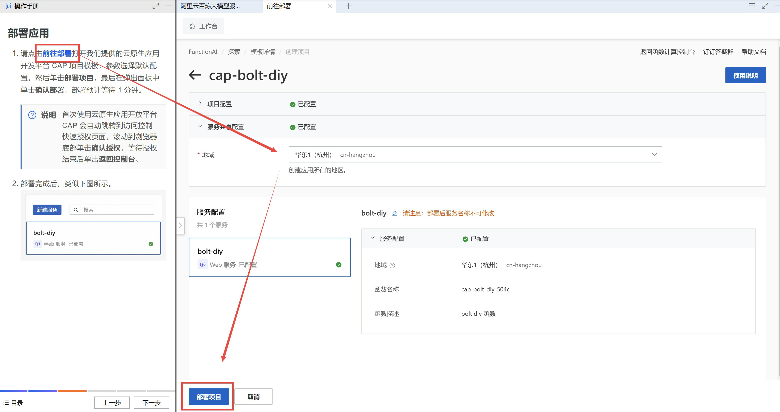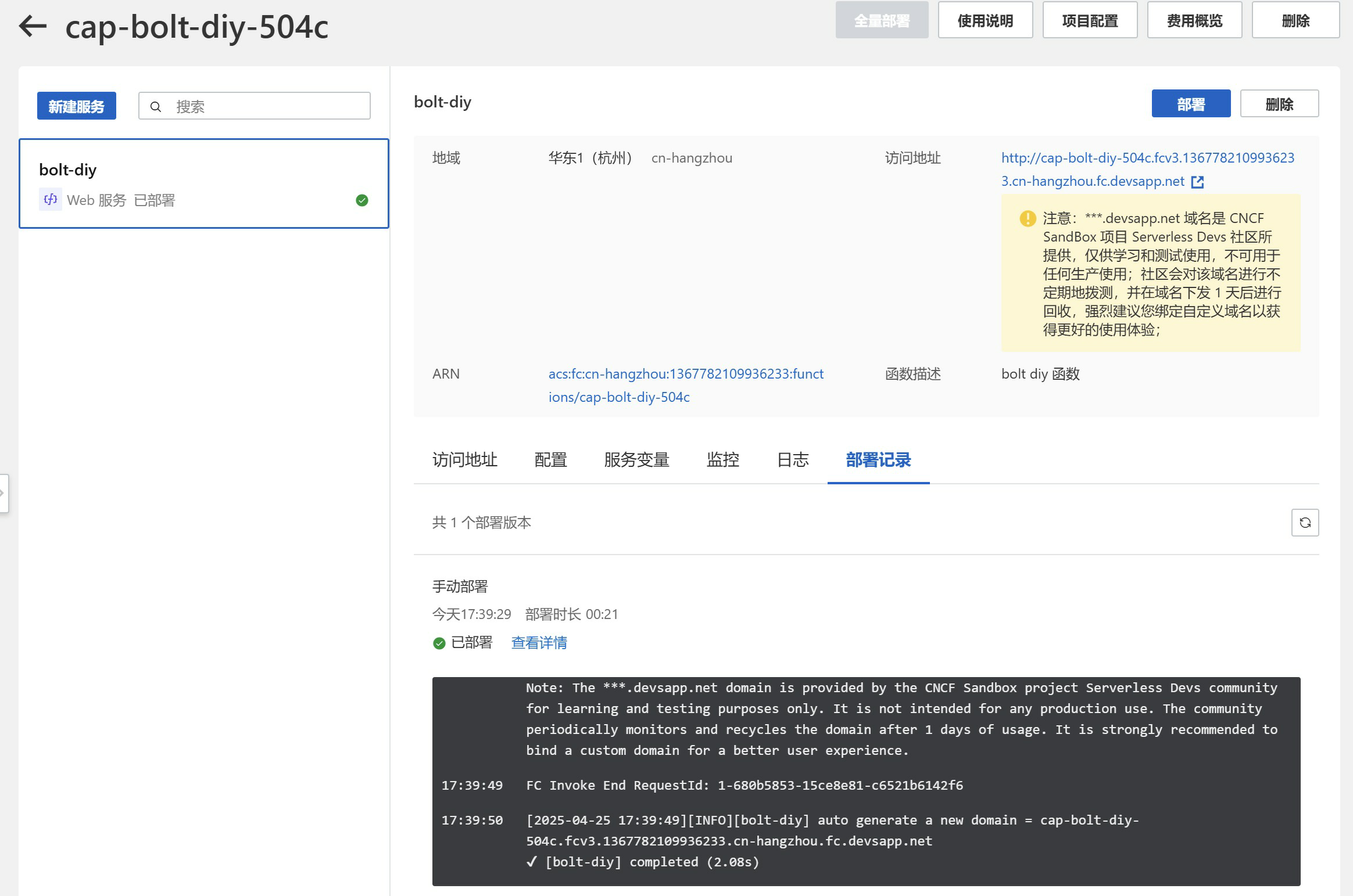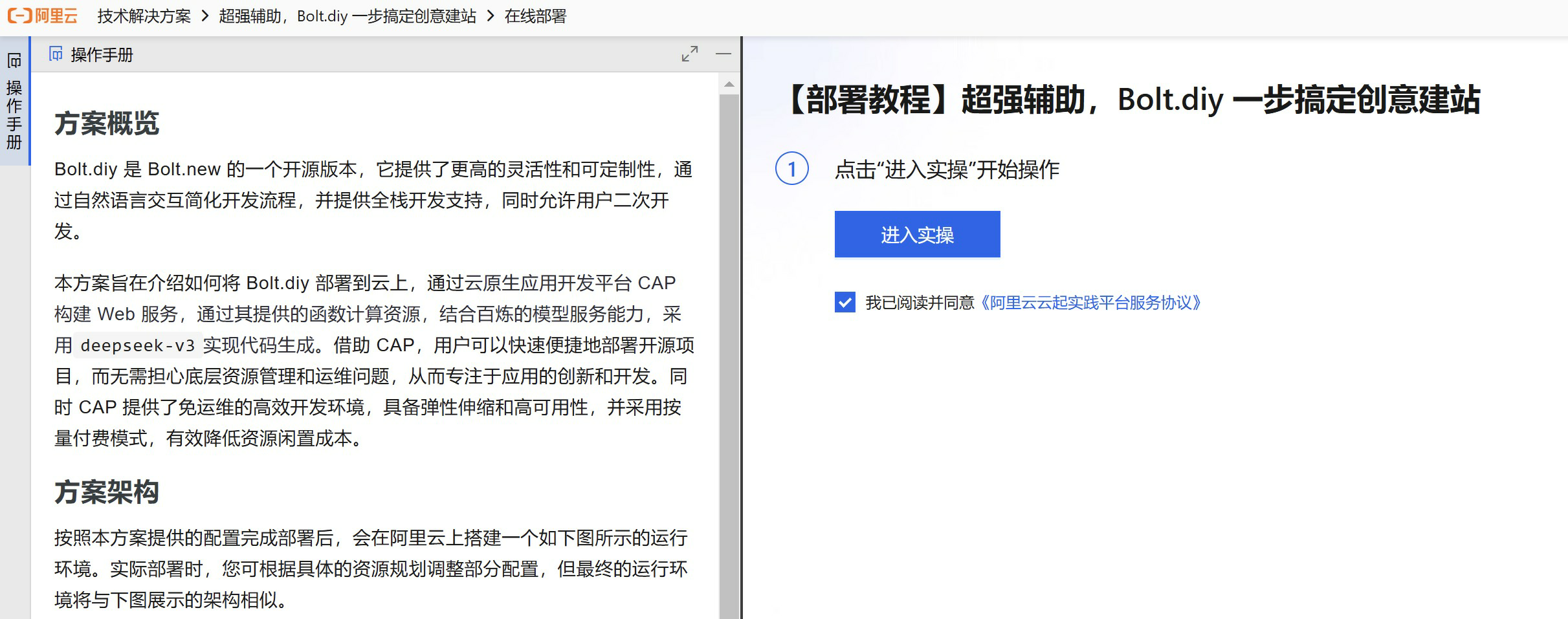 阿里云提供了非常详细的实践手册,可以前往方案页面跟着一步一步进行操作:https://www.aliyun.com/solution/tech-solution/fc-bolt-diy?utm_content=g_1000403491