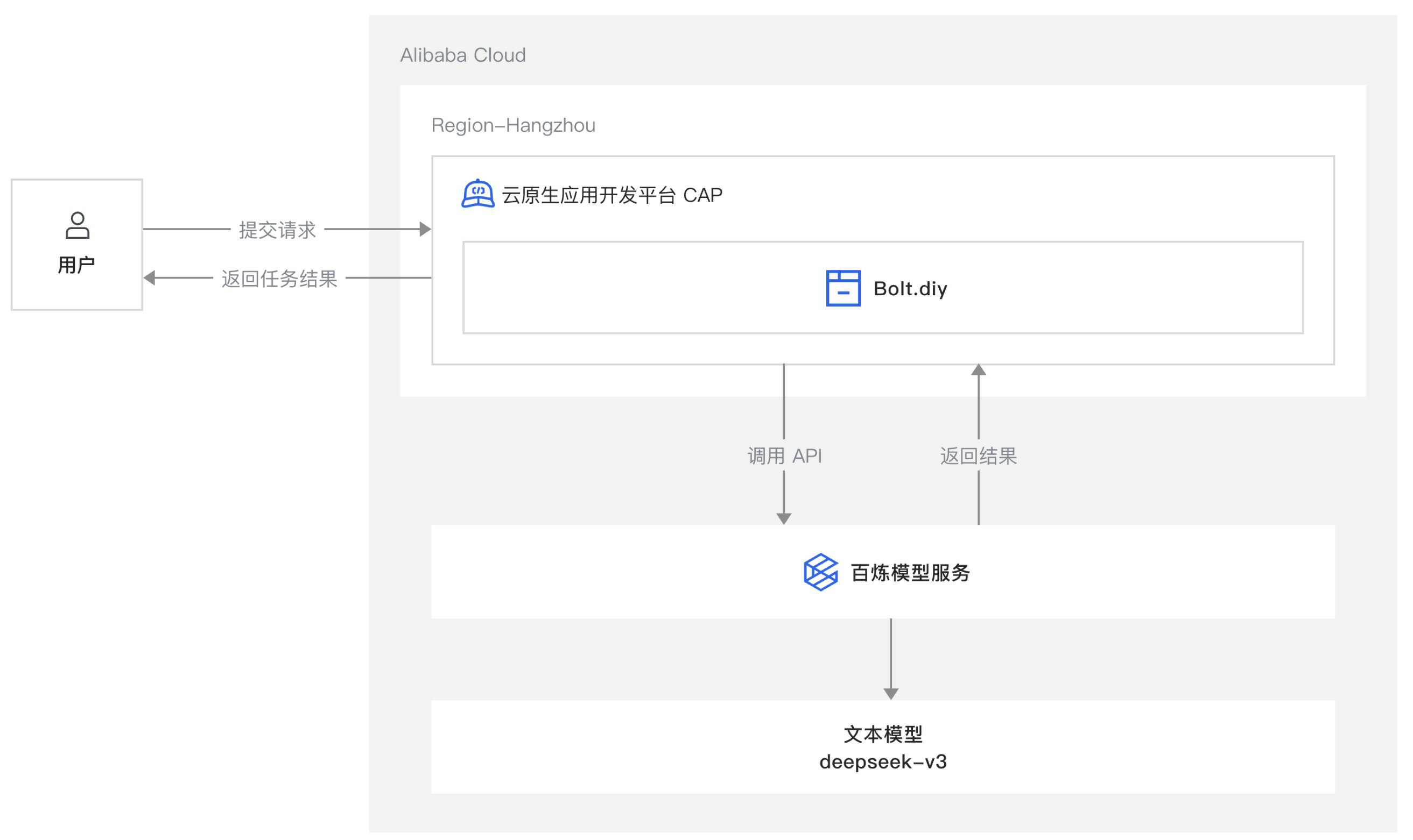 Bolt.diy 是Bolt.new 的⼀个开源版本,它提供了更⾼的灵活性和可定制性,通过⾃然语⾔交互简化 开发流程,并提供全栈开发⽀持,同时允许⽤户⼆次开发。阿里云提供的方案是基于函数计算FC 搭建,集成了 阿⾥云百炼模型服务,新用户可以领取免费资源,搭上 AI 的快车道,资源指路:https://www.aliyun.com/solution/tech-solution/fc-bolt-diy?utm_content=g_1000403491