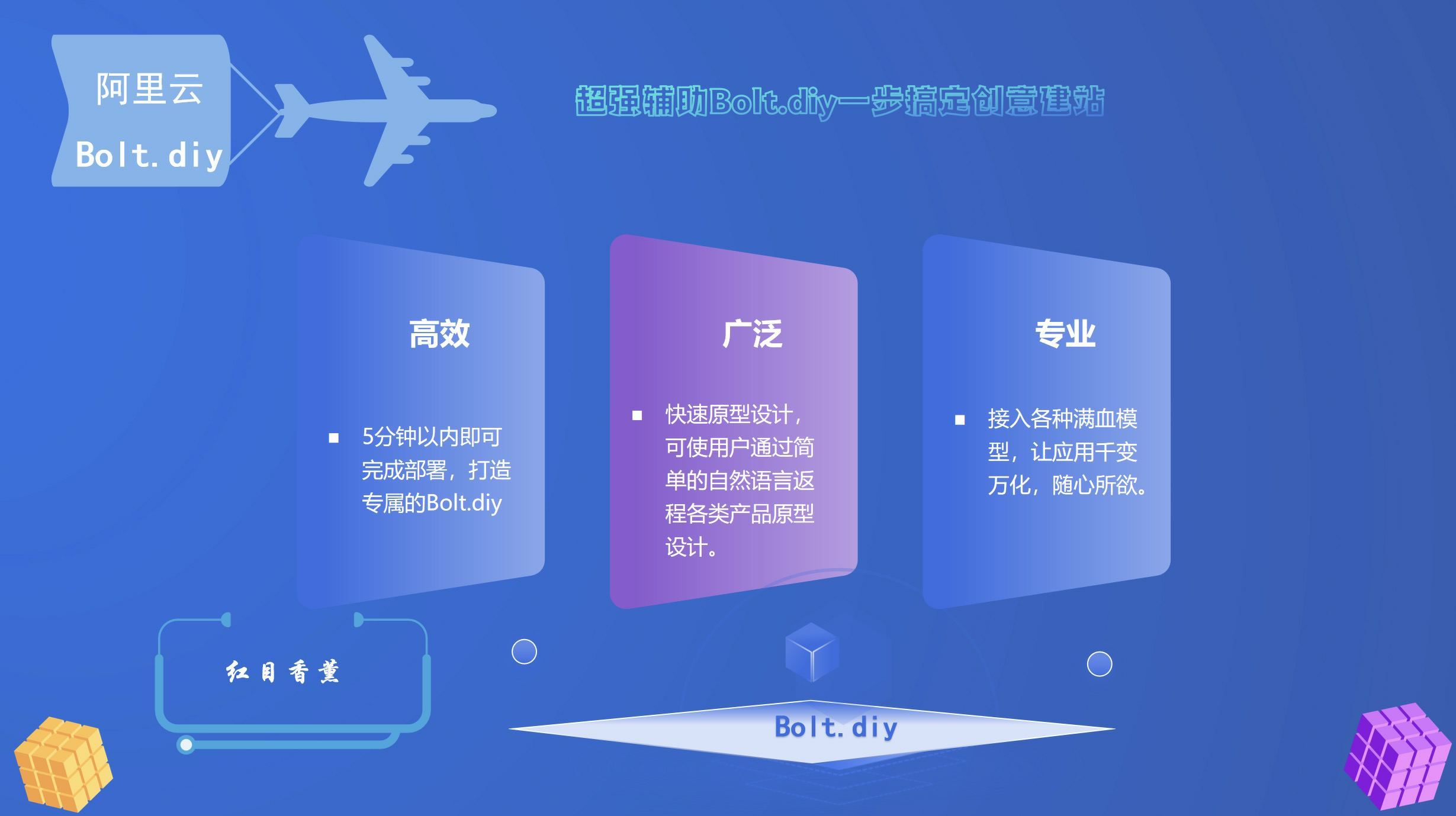 最近发现了⼀款可以部署在阿⾥云上的 AI 产品 ——Bolt.diy。它是⼀个非常好用的AI⼯具,通过提示词就可以帮助我们快速完成数据分析、网站搭建、原型设计等工作。